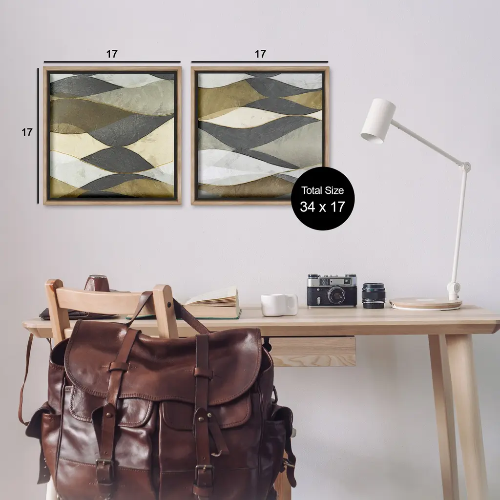 Elevate your home or office to the next level with Stupell Framed Floating Canvas Wall Art. Our premium hand-stretched canvas is mounted securely into a sturdy lightweight frame. The museum-style gap between the wrapped canvas and the box frame gives the illusion of floating artwork. Stupell Wall Art is made in the USA.Features: Dimensions: 2 Piece Set, Each Frame is 18 x 1.7 x 18Two Piece Floating Frame Canvas Products are available as 18"x18" or 25"x25" Panels. All Floating Frame Canvas Products have a 1.7" Depth.Wall Art is Ready to Hang with Hardware Free Hanging. No Installation required. For Easy Set Up Lean or Layer Artwork on Shelf or Against Wall. Artwork is Permently Fixed into the Frame.Our elevated 1.7" Thick Floating Frame is the perfect complement to our canvas style Wall Art. We use only the highest quality inks in house with industry leading printing solutions. Canvas is hand stretched over a durable wood foundation and then mounted securly into a Modern Box Frame. Made in the USA.Artwork Relates To: Abstract, Modern, Pattern, Shapes, Geometric, ContemporaryDesign by Alonzo Saunders