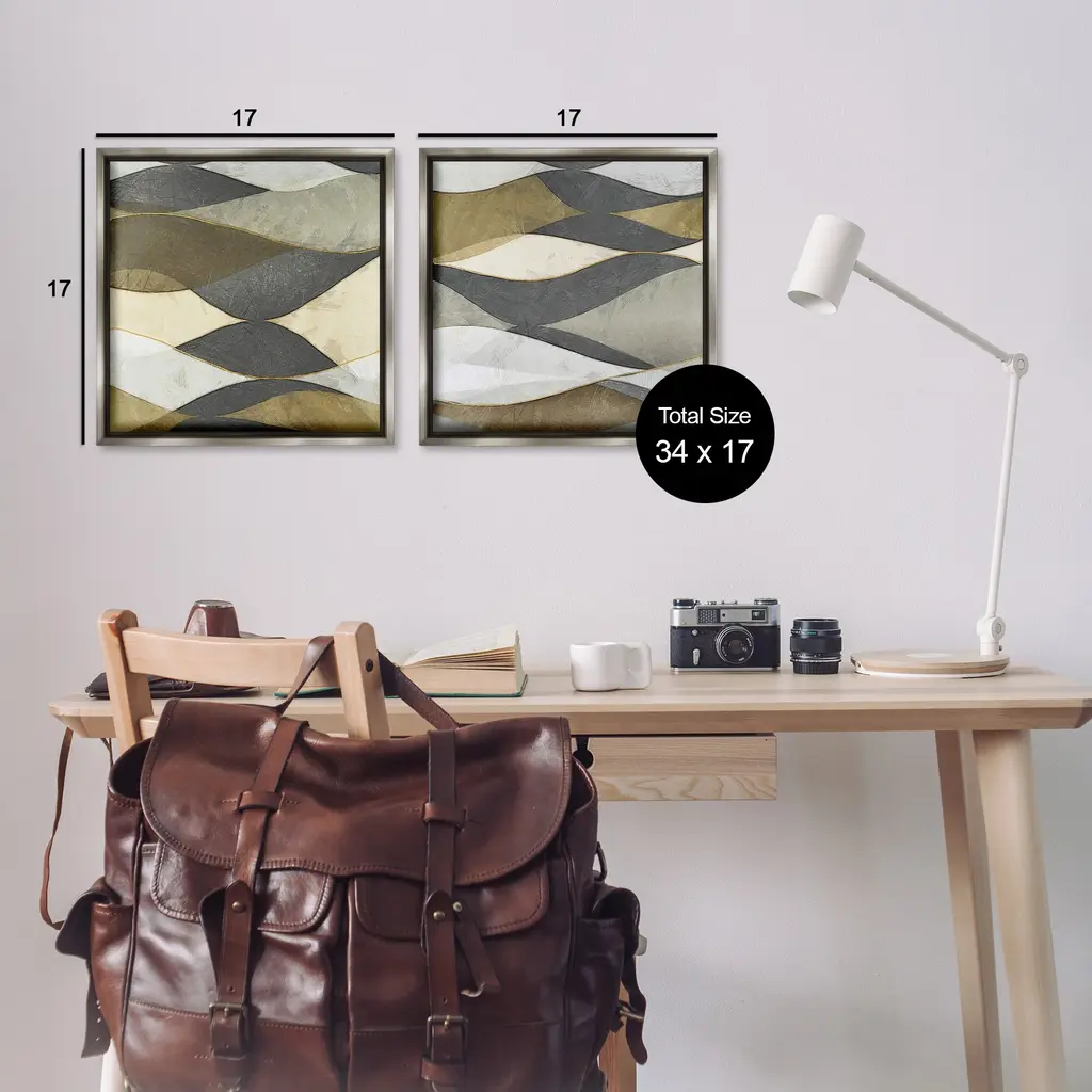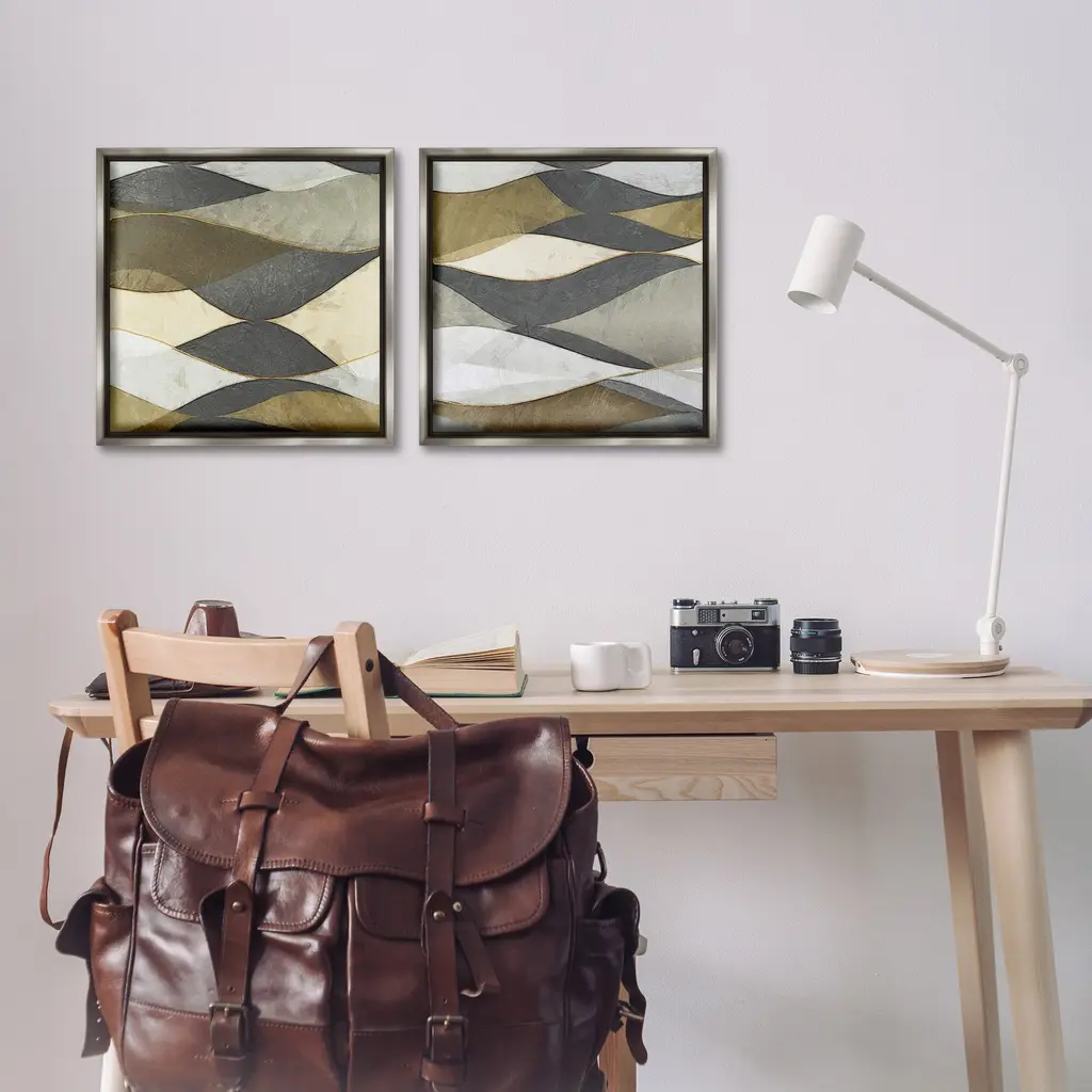 Elevate your home or office to the next level with Stupell Framed Floating Canvas Wall Art. Our premium hand-stretched canvas is mounted securely into a sturdy lightweight frame. The museum-style gap between the wrapped canvas and the box frame gives the illusion of floating artwork. Stupell Wall Art is made in the USA.Features: Dimensions: 2 Piece Set, Each Frame is 18 x 1.7 x 18Two Piece Floating Frame Canvas Products are available as 18"x18" or 25"x25" Panels. All Floating Frame Canvas Products have a 1.7" Depth.Wall Art is Ready to Hang with Hardware Free Hanging. No Installation required. For Easy Set Up Lean or Layer Artwork on Shelf or Against Wall. Artwork is Permently Fixed into the Frame.Our elevated 1.7" Thick Floating Frame is the perfect complement to our canvas style Wall Art. We use only the highest quality inks in house with industry leading printing solutions. Canvas is hand stretched over a durable wood foundation and then mounted securly into a Modern Box Frame. Made in the USA.Artwork Relates To: Abstract, Modern, Pattern, Shapes, Geometric, ContemporaryDesign by Alonzo Saunders