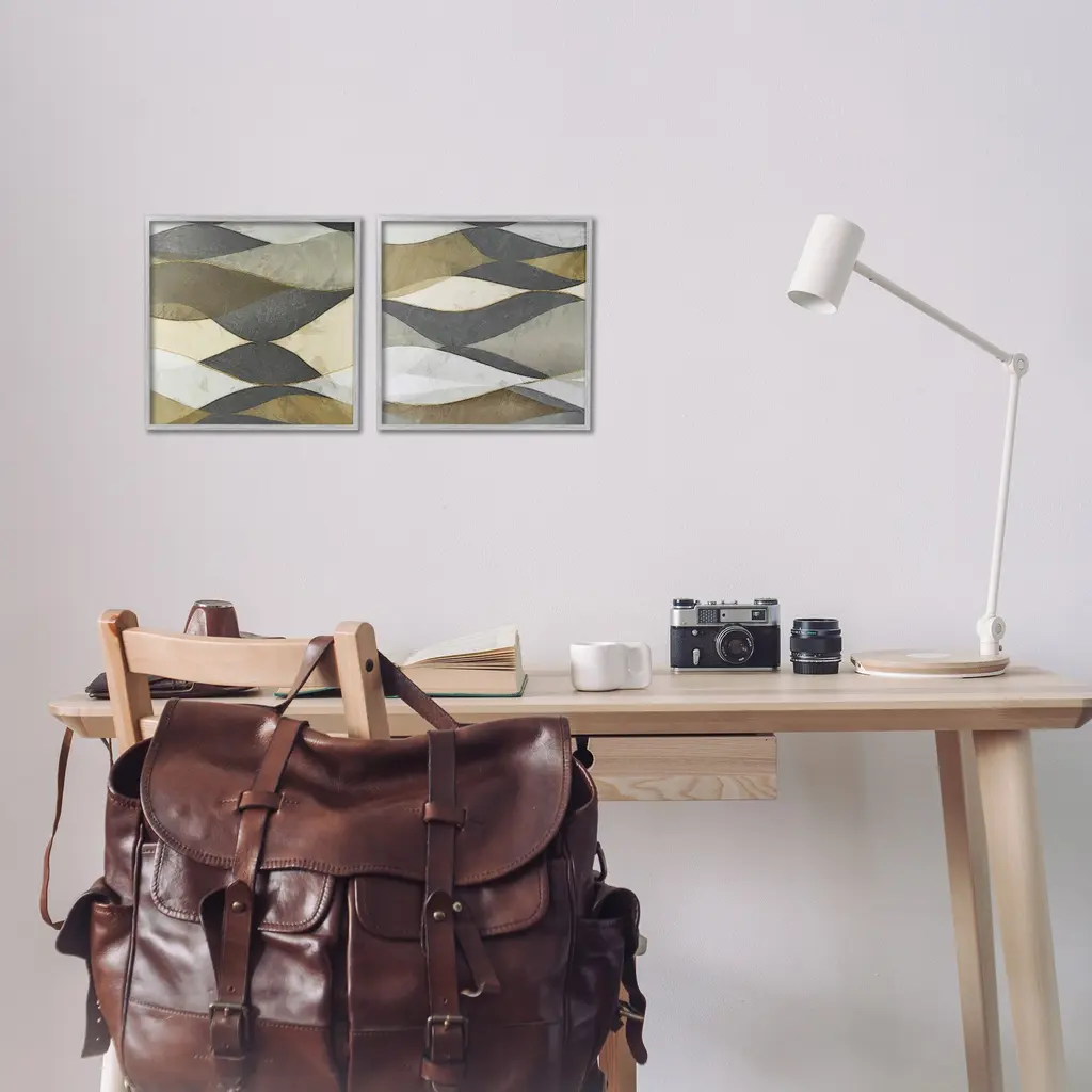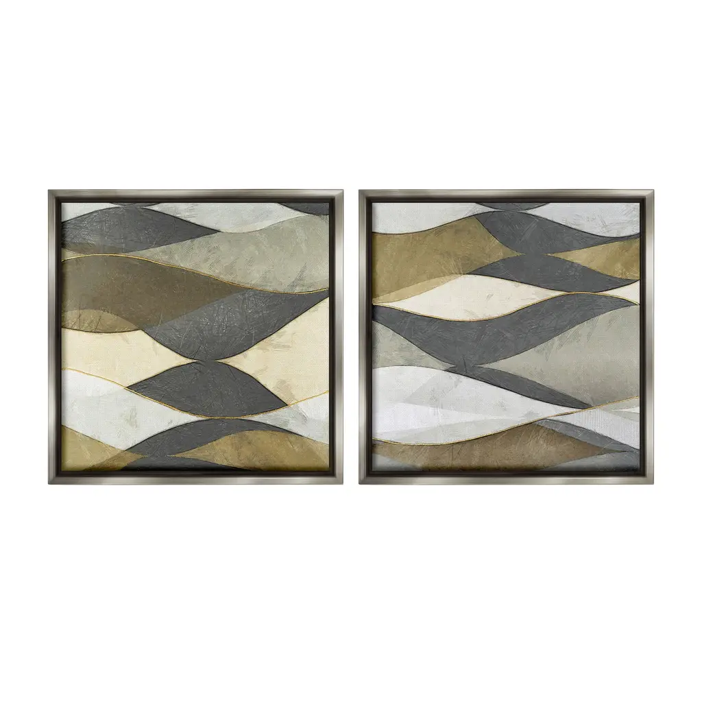 Fill any space in your home or office with our Framed Wall Art Sets. Our framed artwork is securely mounted into a 1.5-inch thick wood grain frame and ready to hang. Frames are available in three alluring styles: black, gray farmhouse and white. Stupell Wall Art is made in the USA.Features: Dimensions: 2 Piece Set, Each Panel is 12 x 1.5 x 12 FramedTwo Piece Framed Giclee Sets are available as 12"x12", 17"x17" or 24"x24" Panels. All Framed giclee Products have a 1.5" Depth.Wall Art is Ready to Hang with Hardware Free Hanging. No installation required. For Easy Set Up Lean or Layer Artwork on Shelf or Against Wall.Curated Wall Art Sets make it easy for you complete the theme for any room. Our giclée prints are carefully mounted on a durable MDF backing, and then perfectly finished in a 1.5 inch thick woodgrain frame. Mounted frame colors include black, gray farmhouse and white. Made In USA.Artwork Relates To: Abstract, Modern, Pattern, Shapes, Geometric, ContemporaryDesign by Alonzo Saunders