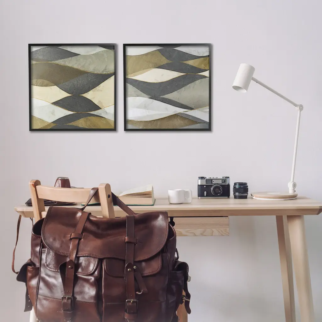Fill any space in your home or office with our Framed Wall Art Sets. Our framed artwork is securely mounted into a 1.5-inch thick wood grain frame and ready to hang. Frames are available in three alluring styles: black, gray farmhouse and white. Stupell Wall Art is made in the USA.Features: Dimensions: 2 Piece Set, Each Panel is 12 x 1.5 x 12 FramedTwo Piece Framed Giclee Sets are available as 12"x12", 17"x17" or 24"x24" Panels. All Framed giclee Products have a 1.5" Depth.Wall Art is Ready to Hang with Hardware Free Hanging. No installation required. For Easy Set Up Lean or Layer Artwork on Shelf or Against Wall.Curated Wall Art Sets make it easy for you complete the theme for any room. Our giclée prints are carefully mounted on a durable MDF backing, and then perfectly finished in a 1.5 inch thick woodgrain frame. Mounted frame colors include black, gray farmhouse and white. Made In USA.Artwork Relates To: Abstract, Modern, Pattern, Shapes, Geometric, ContemporaryDesign by Alonzo Saunders