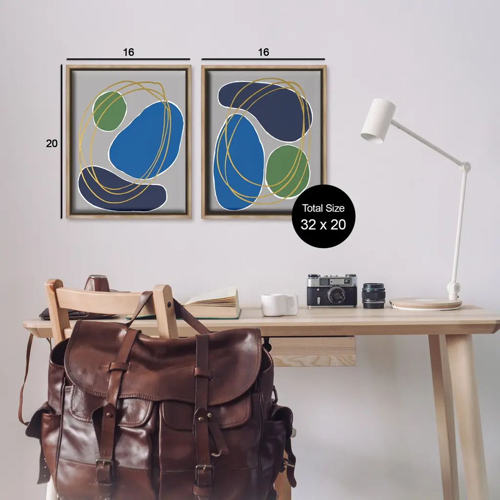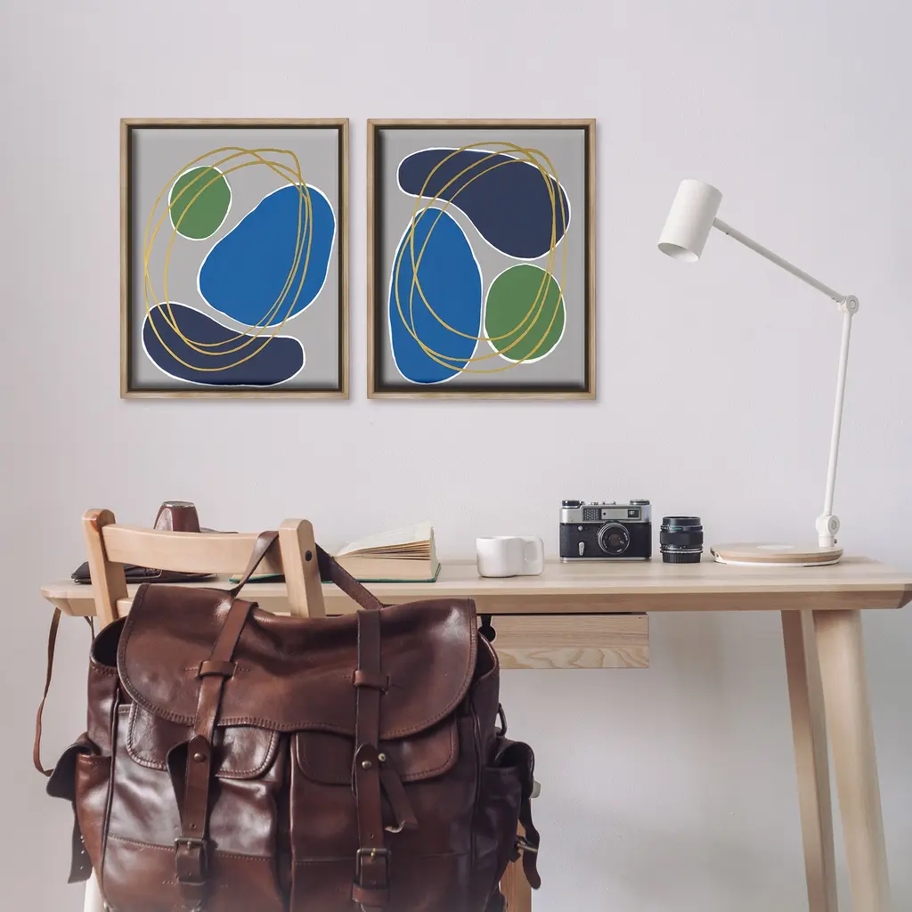 Elevate your home or office to the next level with Stupell Framed Floating Canvas Wall Art. Our premium hand-stretched canvas is mounted securely into a sturdy lightweight frame. The museum-style gap between the wrapped canvas and the box frame gives the illusion of floating artwork. Stupell Wall Art is made in the USA.Features: Dimensions: 2 Piece Set, Each Frame is 17 x 1.7 x 21Two Piece Floater Framed Canvas are available as 17x21 or 25x31 Panels. All Floater Frame Products have a 1.7" Depth.Wall Art is Ready to Hang with Hardware Free Hanging. No Installation required. For Easy Set Up Lean or Layer Artwork on Shelf or Against Wall. Artwork is Permently Fixed into the Frame.Our elevated 1.7" Thick Floating Frame is the perfect complement to our canvas style Wall Art. We use only the highest quality inks in house with industry leading printing solutions. Canvas is hand stretched over a durable wood foundation and then mounted securly into a Modern Box Frame. Made in the USA.Artwork Relates To: Abstract, Modern, Pattern, Shapes, Geometric, ContemporaryDesign by Regina Moore