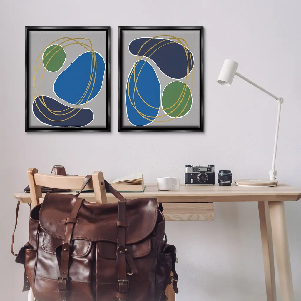 Elevate your home or office to the next level with Stupell Framed Floating Canvas Wall Art. Our premium hand-stretched canvas is mounted securely into a sturdy lightweight frame. The museum-style gap between the wrapped canvas and the box frame gives the illusion of floating artwork. Stupell Wall Art is made in the USA.Features: Dimensions: 2 Piece Set, Each Frame is 17 x 1.7 x 21Two Piece Floater Framed Canvas are available as 17x21 or 25x31 Panels. All Floater Frame Products have a 1.7" Depth.Wall Art is Ready to Hang with Hardware Free Hanging. No Installation required. For Easy Set Up Lean or Layer Artwork on Shelf or Against Wall. Artwork is Permently Fixed into the Frame.Our elevated 1.7" Thick Floating Frame is the perfect complement to our canvas style Wall Art. We use only the highest quality inks in house with industry leading printing solutions. Canvas is hand stretched over a durable wood foundation and then mounted securly into a Modern Box Frame. Made in the USA.Artwork Relates To: Abstract, Modern, Pattern, Shapes, Geometric, ContemporaryDesign by Regina Moore