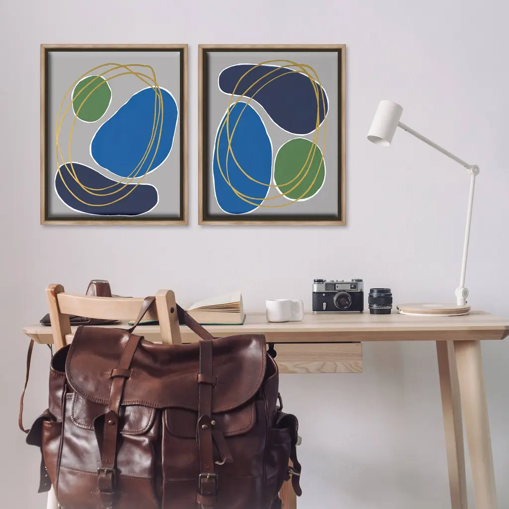 Elevate your home or office to the next level with Stupell Framed Floating Canvas Wall Art. Our premium hand-stretched canvas is mounted securely into a sturdy lightweight frame. The museum-style gap between the wrapped canvas and the box frame gives the illusion of floating artwork. Stupell Wall Art is made in the USA.Features: Dimensions: 2 Piece Set, Each Frame is 17 x 1.7 x 21Two Piece Floater Framed Canvas are available as 17x21 or 25x31 Panels. All Floater Frame Products have a 1.7" Depth.Wall Art is Ready to Hang with Hardware Free Hanging. No Installation required. For Easy Set Up Lean or Layer Artwork on Shelf or Against Wall. Artwork is Permently Fixed into the Frame.Our elevated 1.7" Thick Floating Frame is the perfect complement to our canvas style Wall Art. We use only the highest quality inks in house with industry leading printing solutions. Canvas is hand stretched over a durable wood foundation and then mounted securly into a Modern Box Frame. Made in the USA.Artwork Relates To: Abstract, Modern, Pattern, Shapes, Geometric, ContemporaryDesign by Regina Moore