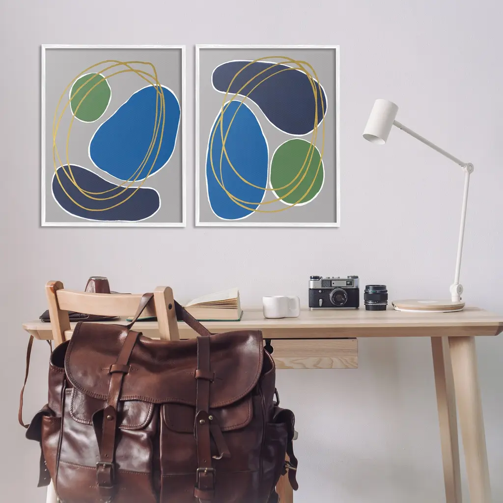 Fill any space in your home or office with our Framed Wall Art Sets. Our framed artwork is securely mounted into a 1.5-inch thick wood grain frame and ready to hang. Frames are available in three alluring styles: black, gray farmhouse and white. Stupell Wall Art is made in the USA.Features: Dimensions: 2 Piece Set, Each Panel is 11 x 1.5 x 14 FramedTwo Piece Framed Giclee Sets are available as 11"x14", 16"x20" or 24"x30" Panels. All Framed Giclee Products have a 1.5" Depth.Wall Art is Ready to Hang with Hardware Free Hanging. No installation required. For Easy Set Up Lean or Layer Artwork on Shelf or Against Wall.Curated Wall Art Sets make it easy for you complete the theme for any room. Our giclée prints are carefully mounted on a durable MDF backing, and then perfectly finished in a 1.5 inch thick woodgrain frame. Mounted frame colors include black, gray farmhouse and white. Made In USA.Artwork Relates To: Abstract, Modern, Pattern, Shapes, Geometric, ContemporaryDesign by Regina Moore