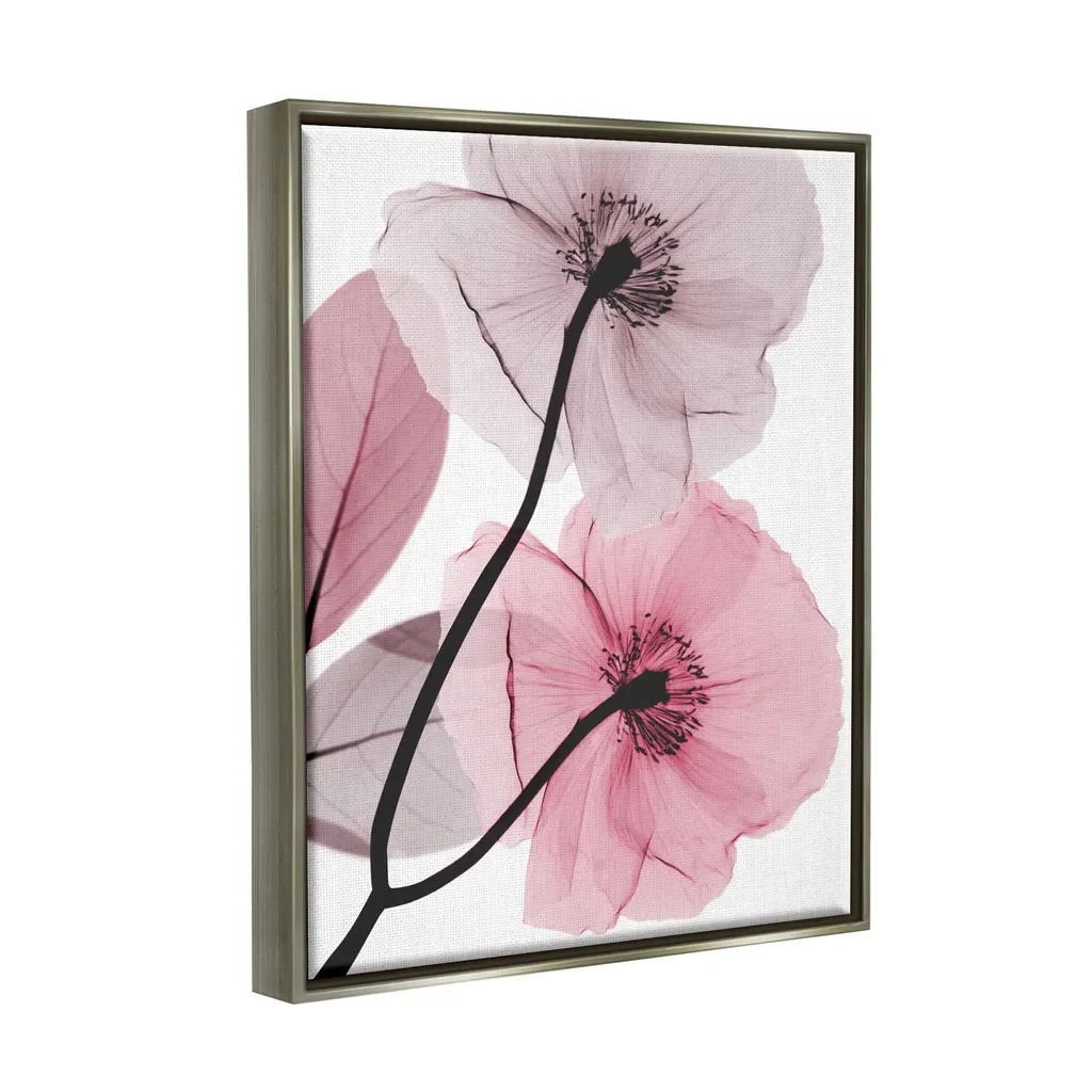 Stupell Contemporary Pink Poppies Framed Floater Canvas Wall Art Design By Albert Koetsier - 17 X 21 - Grey