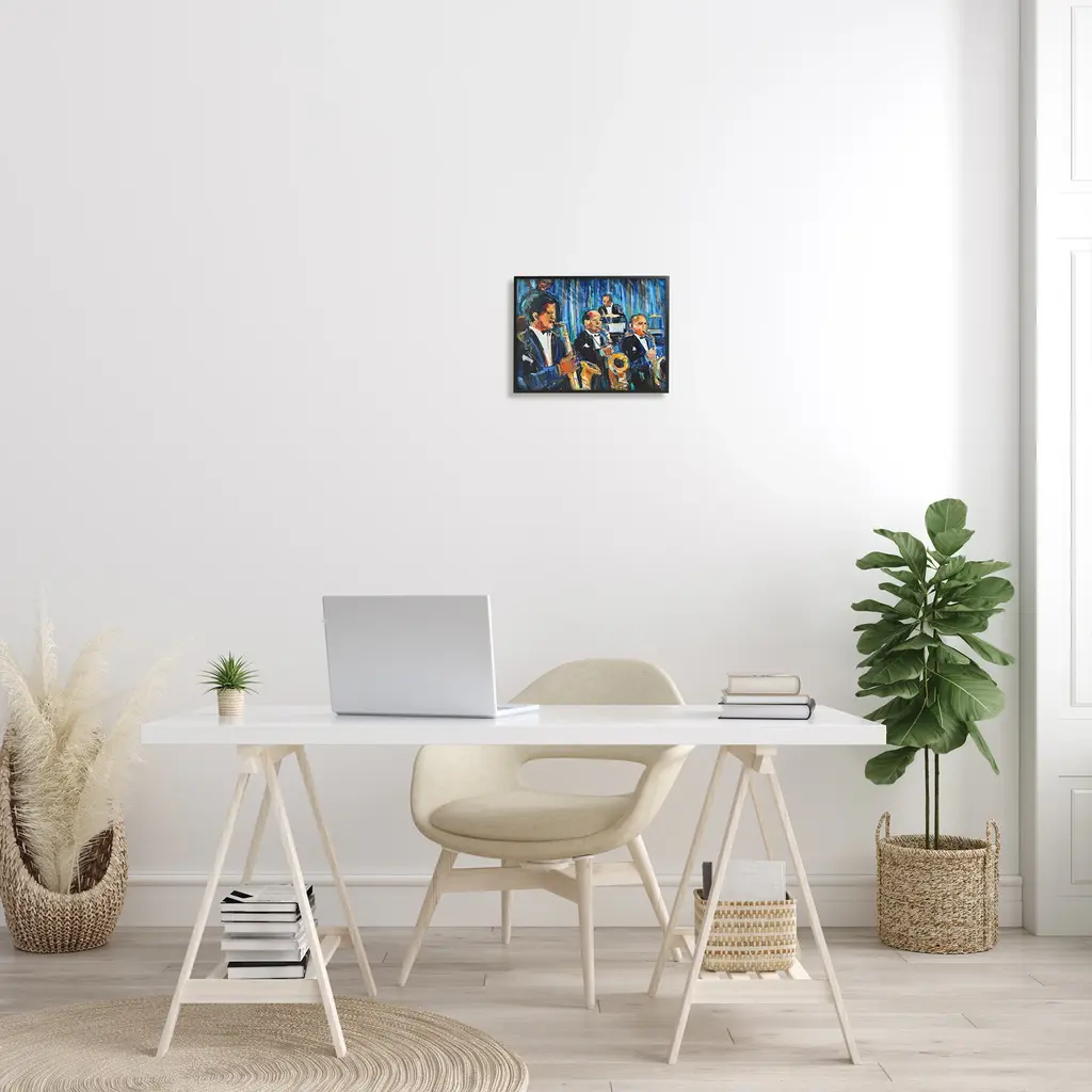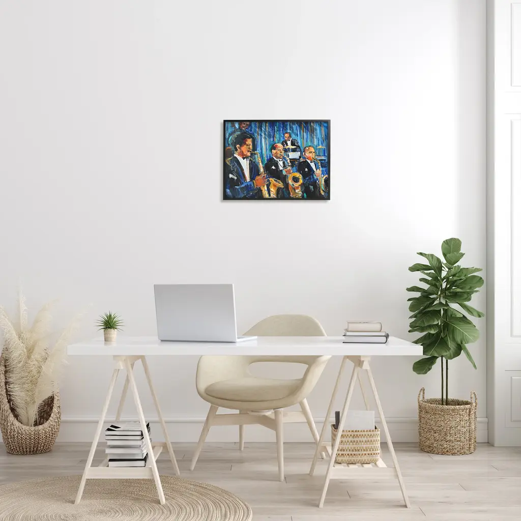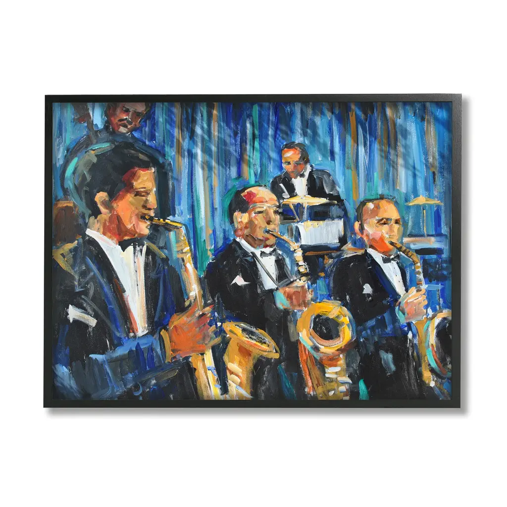 Stupell Contemporary Saxophone Jazz Ensemble Expressive Musicians Framed Wall Art - Blue - 24 X 30 - Grey