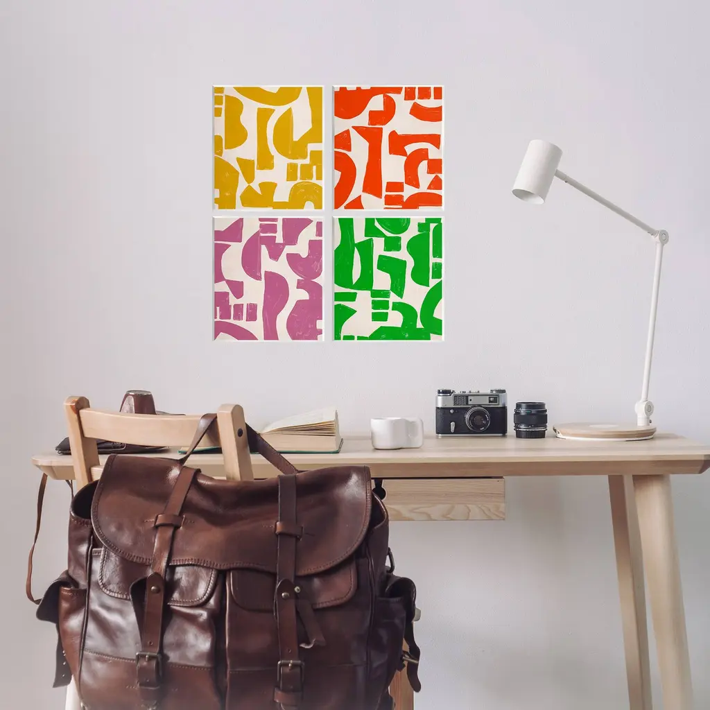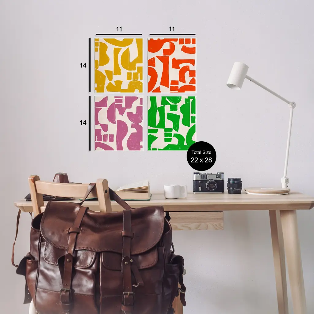 Fill any space with Stupell Wall Art Sets. Our wall plaques start as high-quality lithograph prints mounted on durable 0.5-inch thick MDF wood. Each piece is hand finished and comes with a fresh layer of white foil on the sides to give it a crisp, clean look. Plaques arrive ready to hang without installation and come with removable plastic corners to keep them from damage in transit. Stupell Wall Art is made in the USA.Features: Dimensions: 4 Piece Set, Each Panel is 11 x 0.5 x 14 InchesWall Art is Ready to Hang with Hardware Free Hanging. No installation required. For Easy Set Up Lean or Layer Artwork on Shelf or Against Wall.All of our wall plaques start off as high quality lithograph prints that are then mounted on durable 0.5 inch thick MDF wood. Each piece is hand finished and comes with a fresh layer of foil on the sides to give it a crisp clean look. Made In USA.Artwork Relates To: Abstract, Modern, Shapes, Geometric, PatternDesign by June Erica Vess