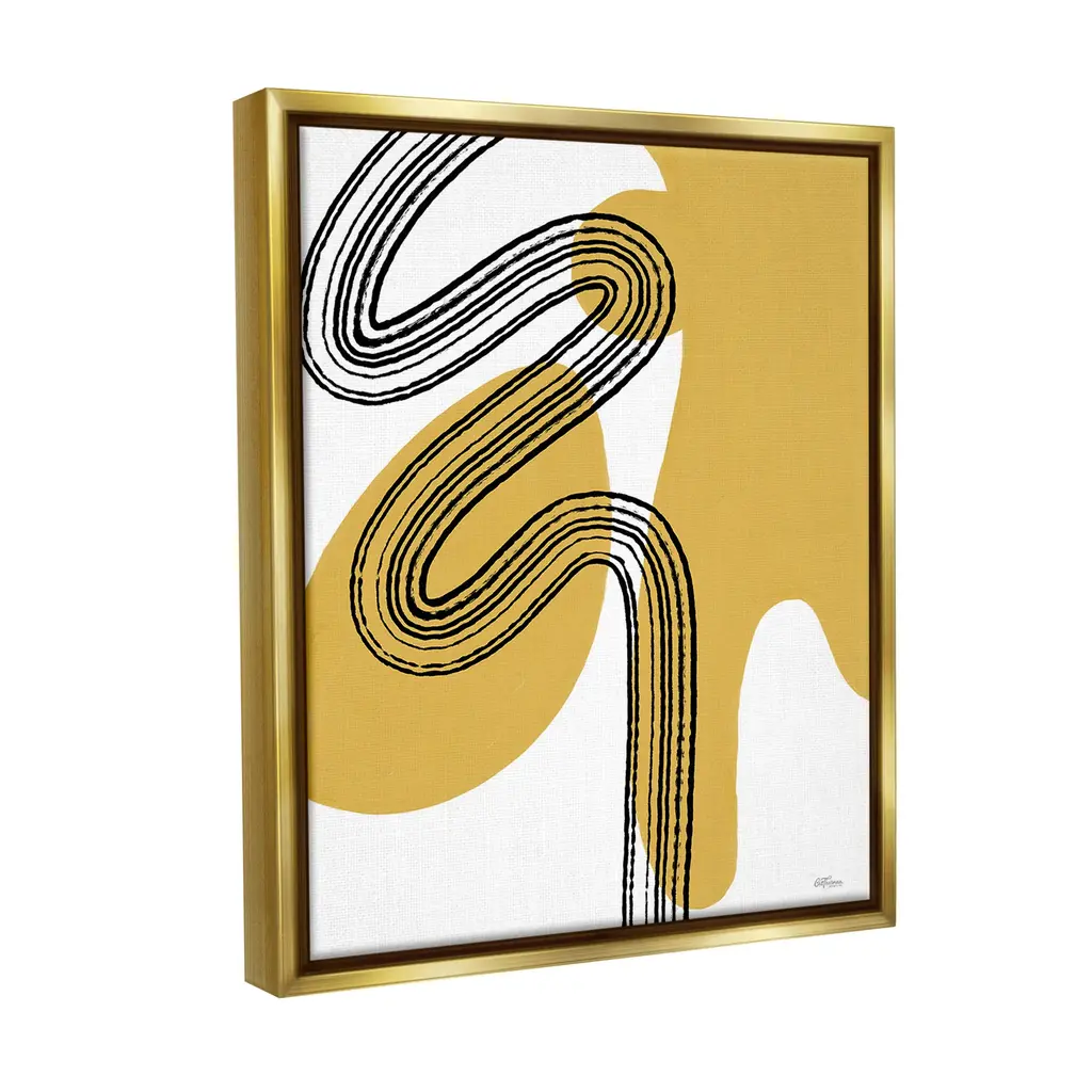 Stupell Contemporary Splatter & Lines Framed Floater Canvas Wall Art Design By Cat Thurman Designs - 25 X 31 - Gold