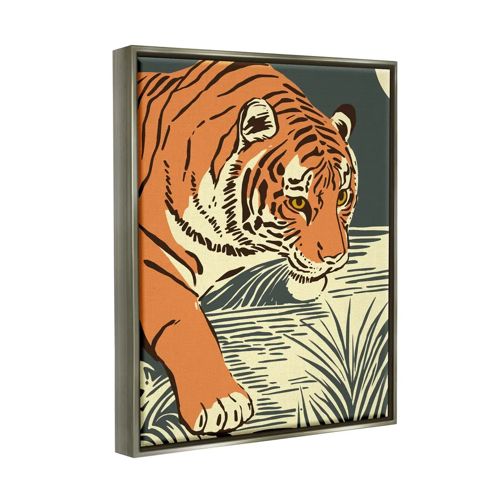 Elevate your home or office to the next level with Stupell Framed Floating Canvas Wall Art. Our premium hand-stretched canvas is mounted securely into a sturdy lightweight frame. The museum-style gap between the wrapped canvas and the box frame gives the illusion of floating artwork. Stupell Wall Art is made in the USA.Features: Dimensions: 17 x 1.7 x 21 Frame, 16 x 1.5 x 20 Canvas ArtFloating Frame Sizes Include Standard: 17 x 1.7 x 21 Oversized: 25 x 1.7 x 31Wall Art is Ready to Hang - No Installation or Hardware Needed. For Easy Set Up Lean or Layer Artwork on Shelf or Against Wall.Our elevated 1.7" Thick Floating Frame is the perfect complement to our canvas style Wall Art. We use only the highest quality inks in house with industry leading printing solutions. Canvas is hand stretched over a durable wood foundation and then mounted securly into a Modern Box Frame. Made in the USA.Artwork Relates To: Animal, Mammal, Tiger, Wildlife, NatureDesign by Ziwei Li