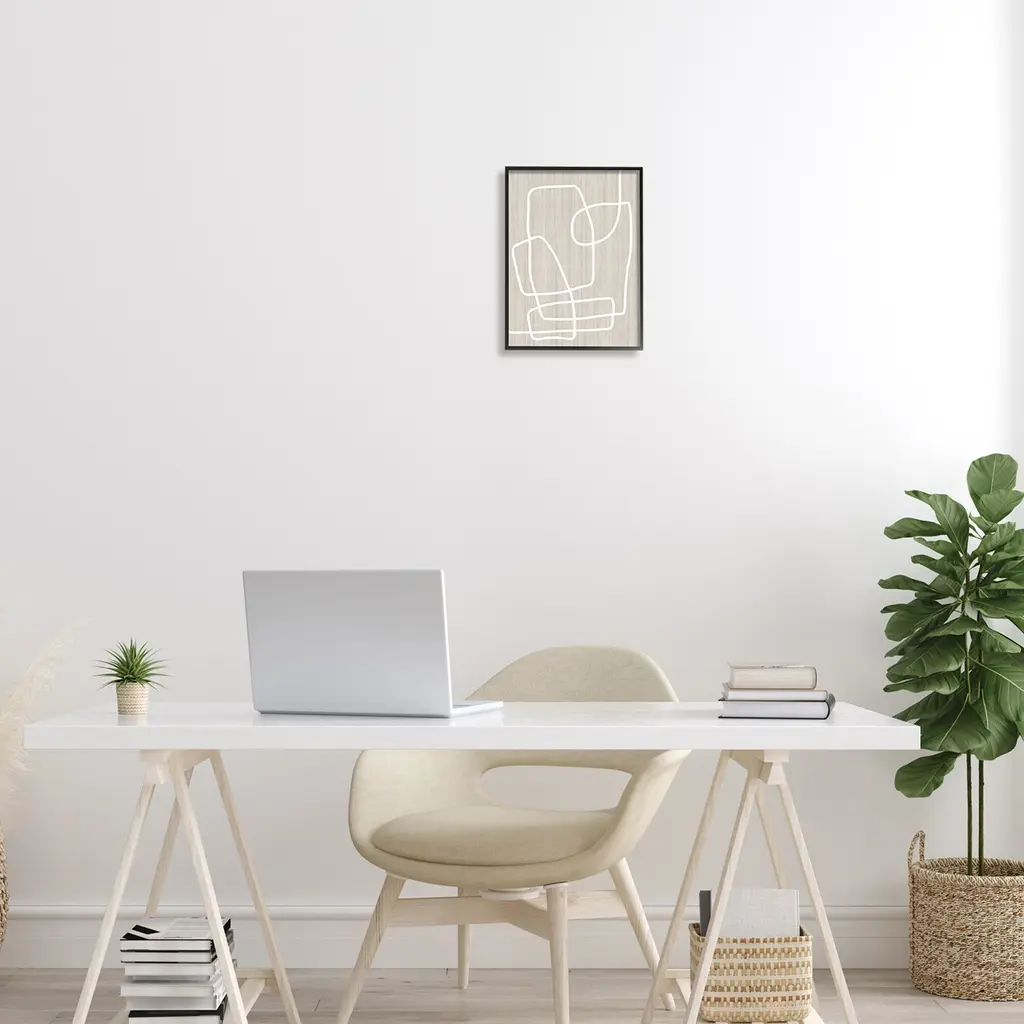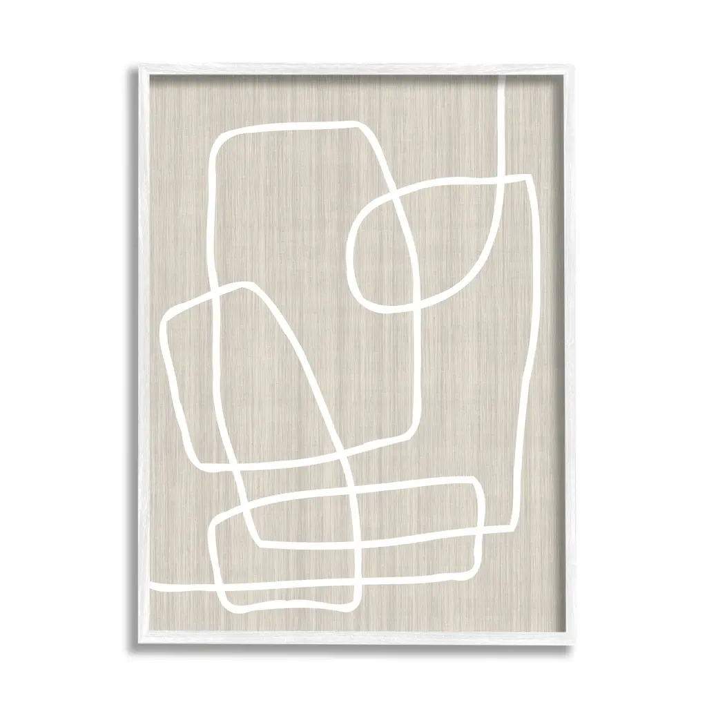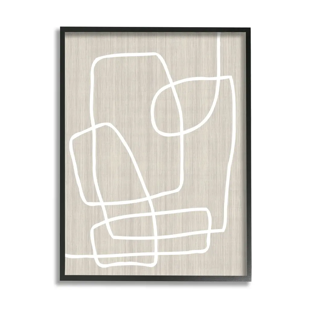 Stupell Contemporary White Line Shapes Minimal Grain Design Framed Wall Art - Beige - 11 X 14 - Black