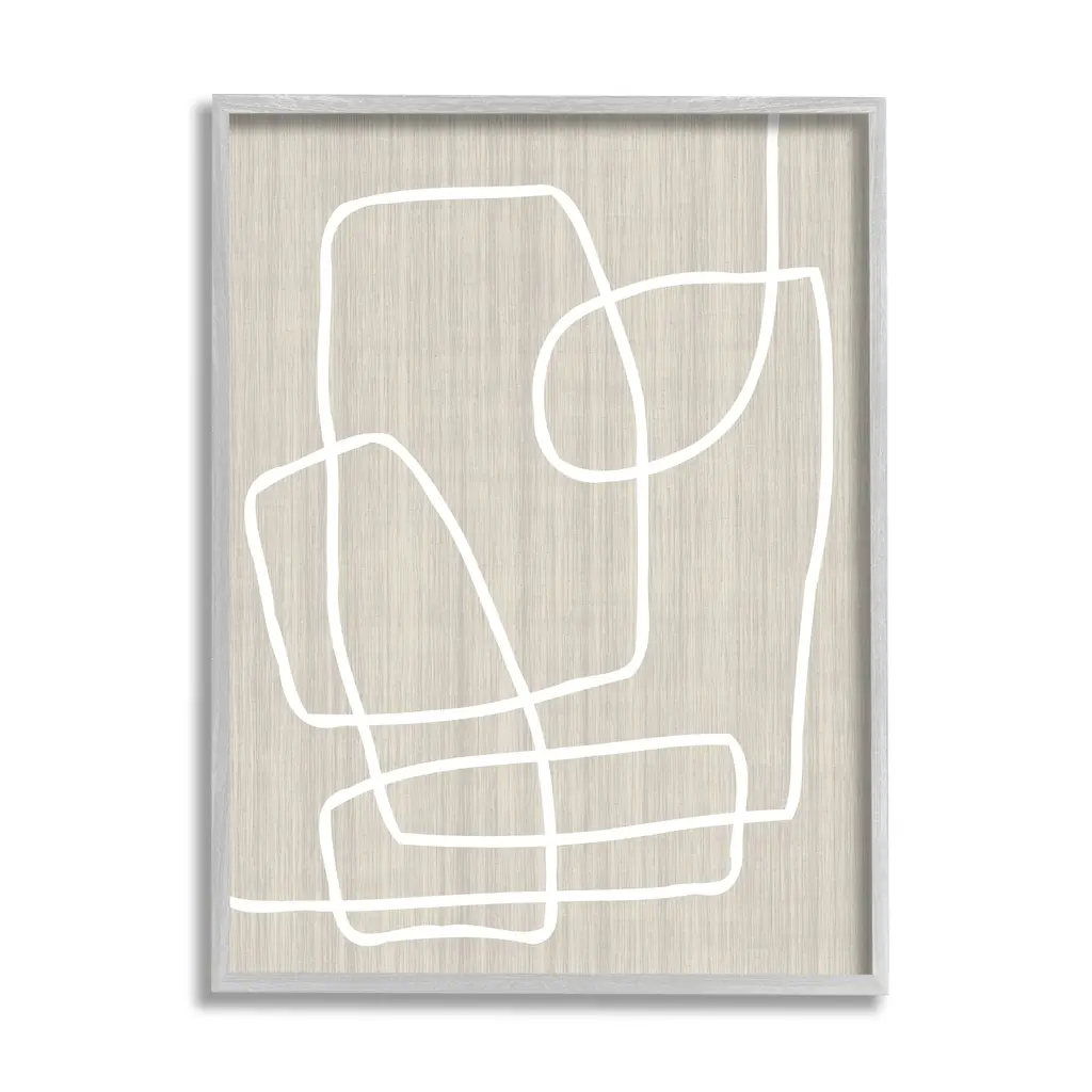 Stupell Contemporary White Line Shapes Minimal Grain Design Framed Wall Art - Beige - 24 X 30 - White