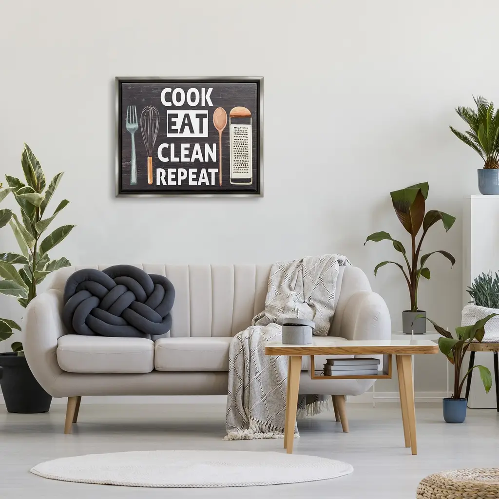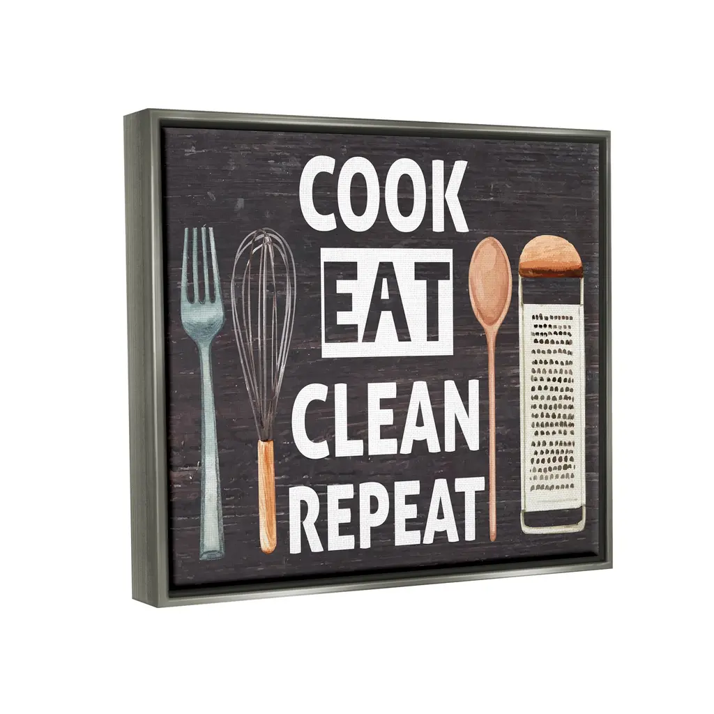 Stupell Cook Eat Clean Repeat Phrase Framed Floater Canvas Wall Art By Nd Art - 20 X 16 - Black