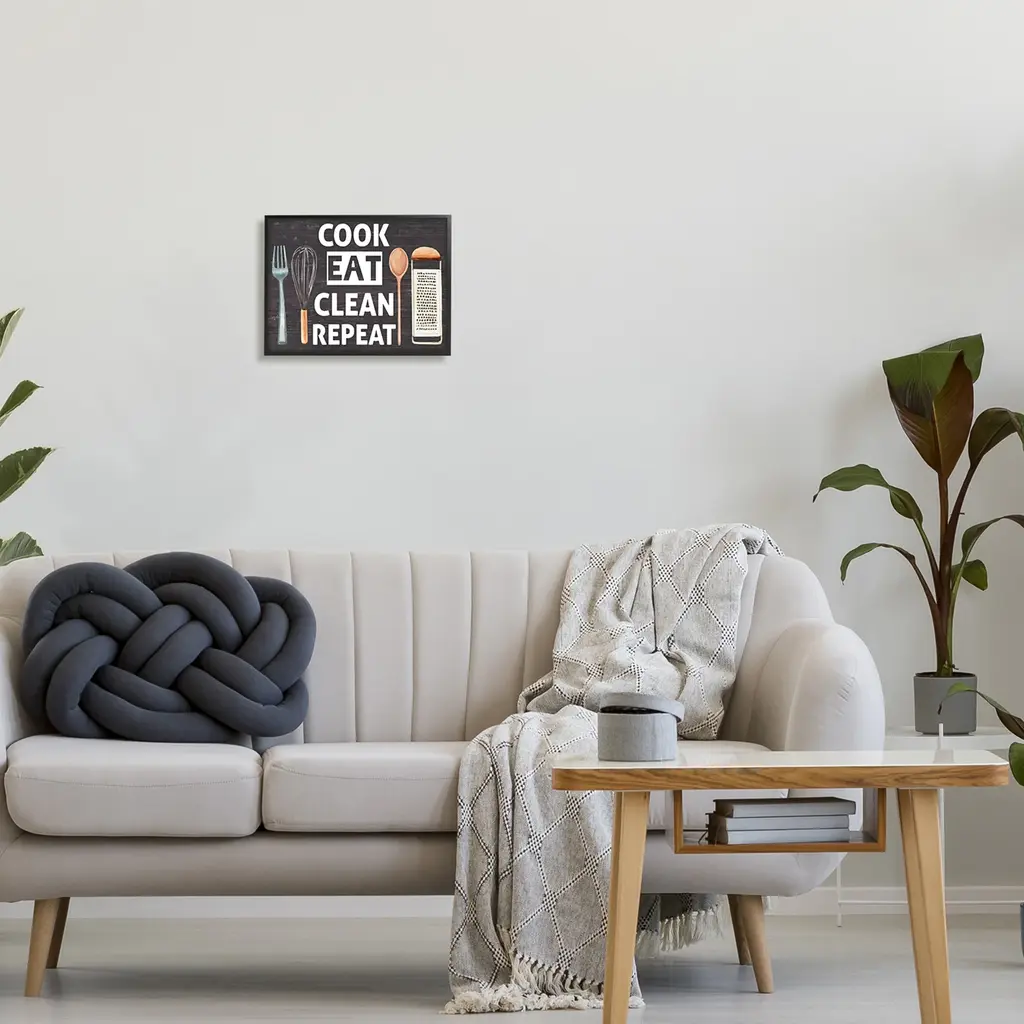 Stupell Cook Eat Clean Repeat Phrase Framed Giclee Art By Nd Art - 14 X 11 - Black
