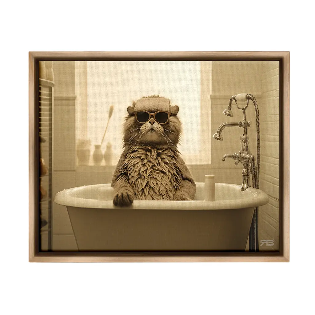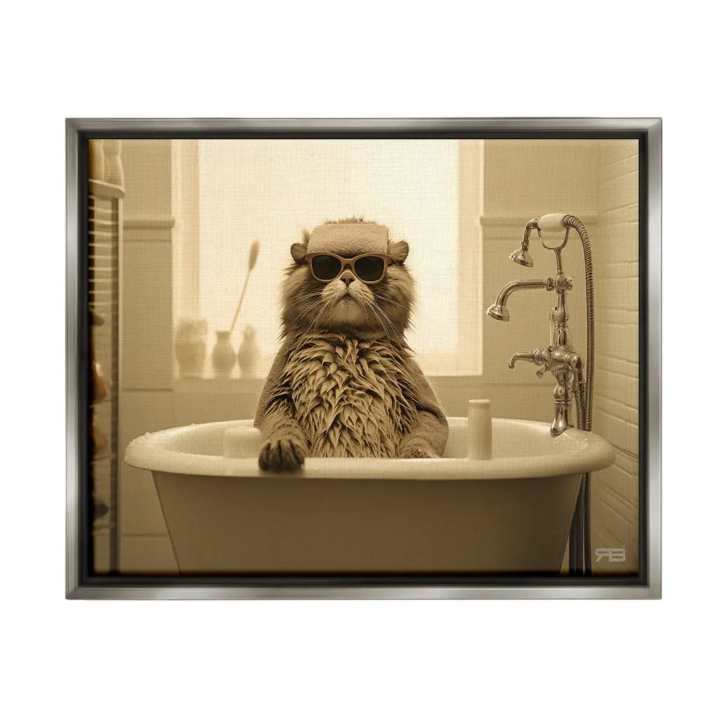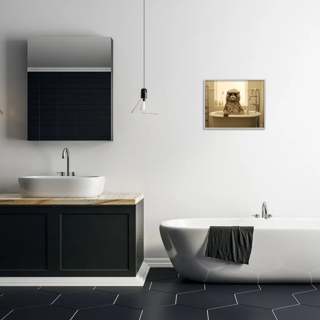 Add dimension to any room with our textured Framed Giclee Artwork. Our framed artwork is securely mounted into a 1.5-inch thick wood grain frame and ready to hang. Frames are available in three alluring styles: black, gray farmhouse and white. In addition, you should check out our oversized options if you want a statement piece. Stupell Wall Art is made in the USA.Features: Dimensions: 14 x 1.5 x 11 FramedFramed Giclee Products are available in the sizes 14"x11", 20"x16" or 30"x24". All Framed Giclee Products have a 1.5" Depth. Wall Art is Ready to Hang with Hardware Free Hanging. No installation required. For Easy Set Up Lean or Layer Artwork on Shelf or Against Wall.Our giclée prints are carefully mounted on a durable MDF backing, and then perfectly finished in a 1.5 inch thick woodgrain frame. Mounted frame colors include black, gray farmhouse and white. Made In USA.Artwork Relates To: Tub, Bathing, Bathtub, Bathroom, Animal, Pet, CatDesign by RB
