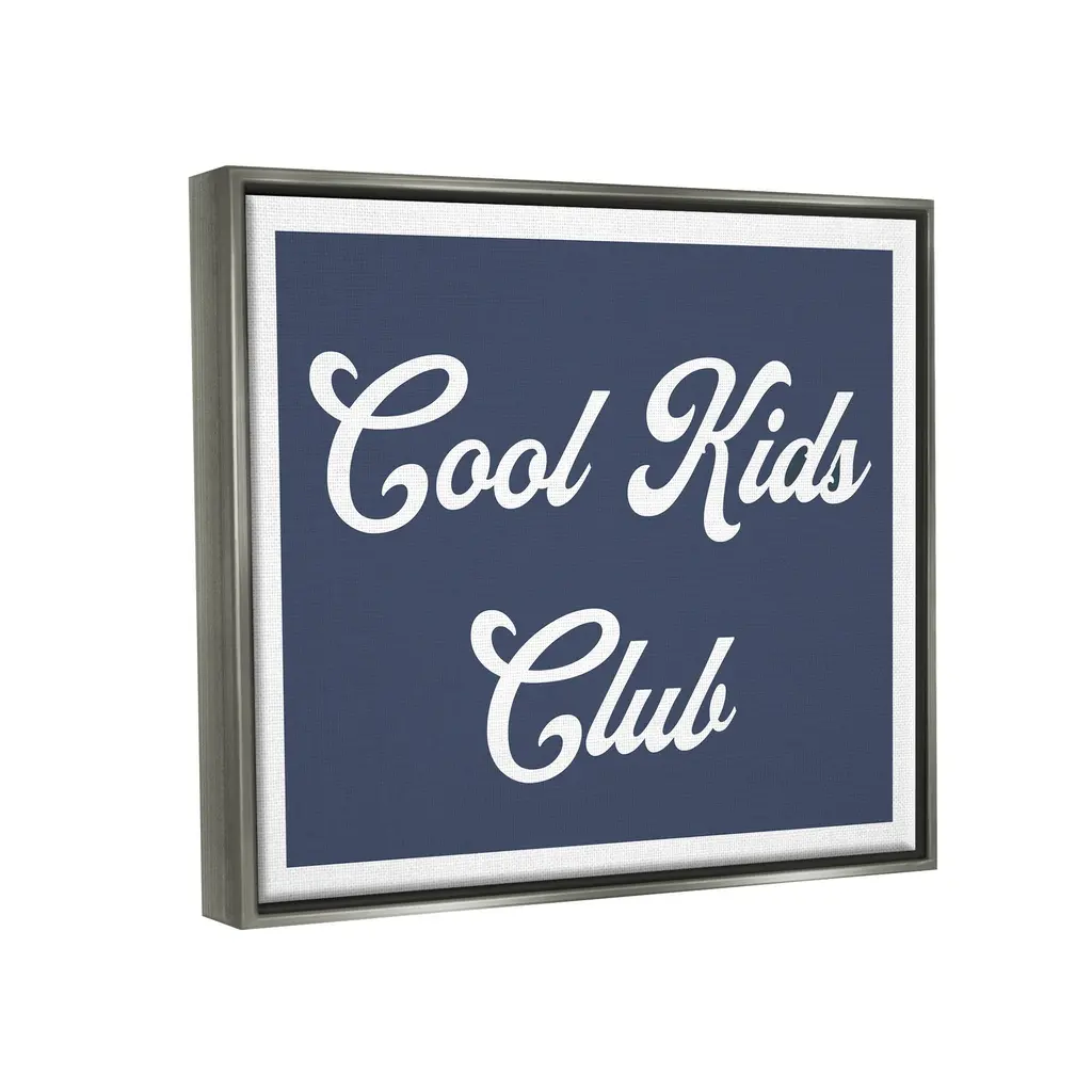 Elevate your home or office to the next level with Stupell Framed Floating Canvas Wall Art. Our premium hand-stretched canvas is mounted securely into a sturdy lightweight frame. The museum-style gap between the wrapped canvas and the box frame gives the illusion of floating artwork. Stupell Wall Art is made in the USA.Features: Dimensions: 21 x 1.7 x 17 Frame, 20 x 1.5 x 16 Canvas ArtFloating Frame Sizes Include Standard: 21 x 1.7 x 17 Oversized: 31 x 1.7 x 25Wall Art is Ready to Hang - No Installation or Hardware Needed. For Easy Set Up Lean or Layer Artwork on Shelf or Against Wall.Our elevated 1.7" Thick Floating Frame is the perfect complement to our canvas style Wall Art. We use only the highest quality inks in house with industry leading printing solutions. Canvas is hand stretched over a durable wood foundation and then mounted securly into a Modern Box Frame. Made in the USA.Artwork Relates To: Phrase, Blue, Cool Kids ClubDesign by Lil' Rue