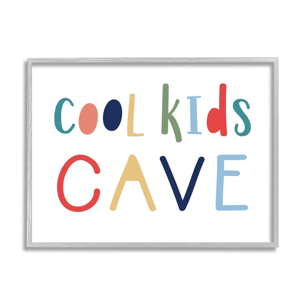 Stupell Cool Kids Live Here Phrase Abstract Pattern Typography Framed Wall Art - Multi-Color - 11 X 14 - Grey