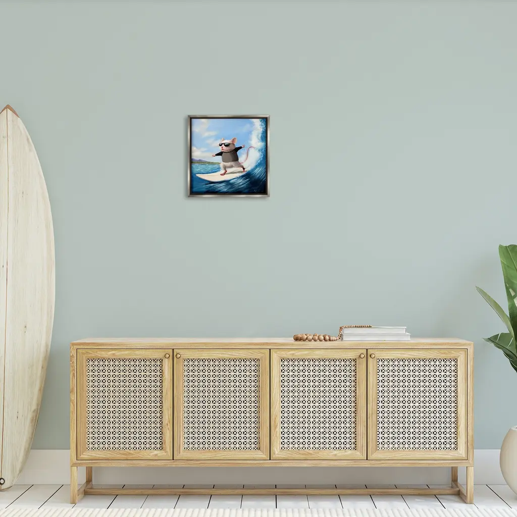 Stupell Cool Surfer Mouse Blue Ocean Waves Framed Floater Canvas Wall Art Design By Lucia Heffernan - 18 X 18 - Grey