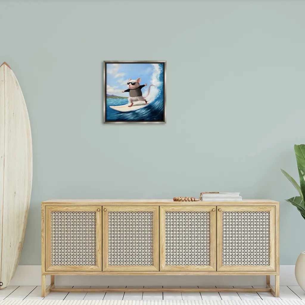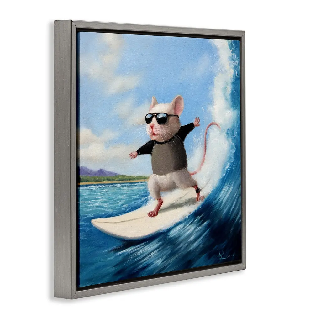 Stupell Cool Surfer Mouse Blue Ocean Waves Framed Floater Canvas Wall Art Design By Lucia Heffernan - 25 X 25 - Grey