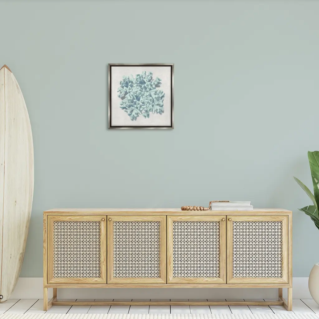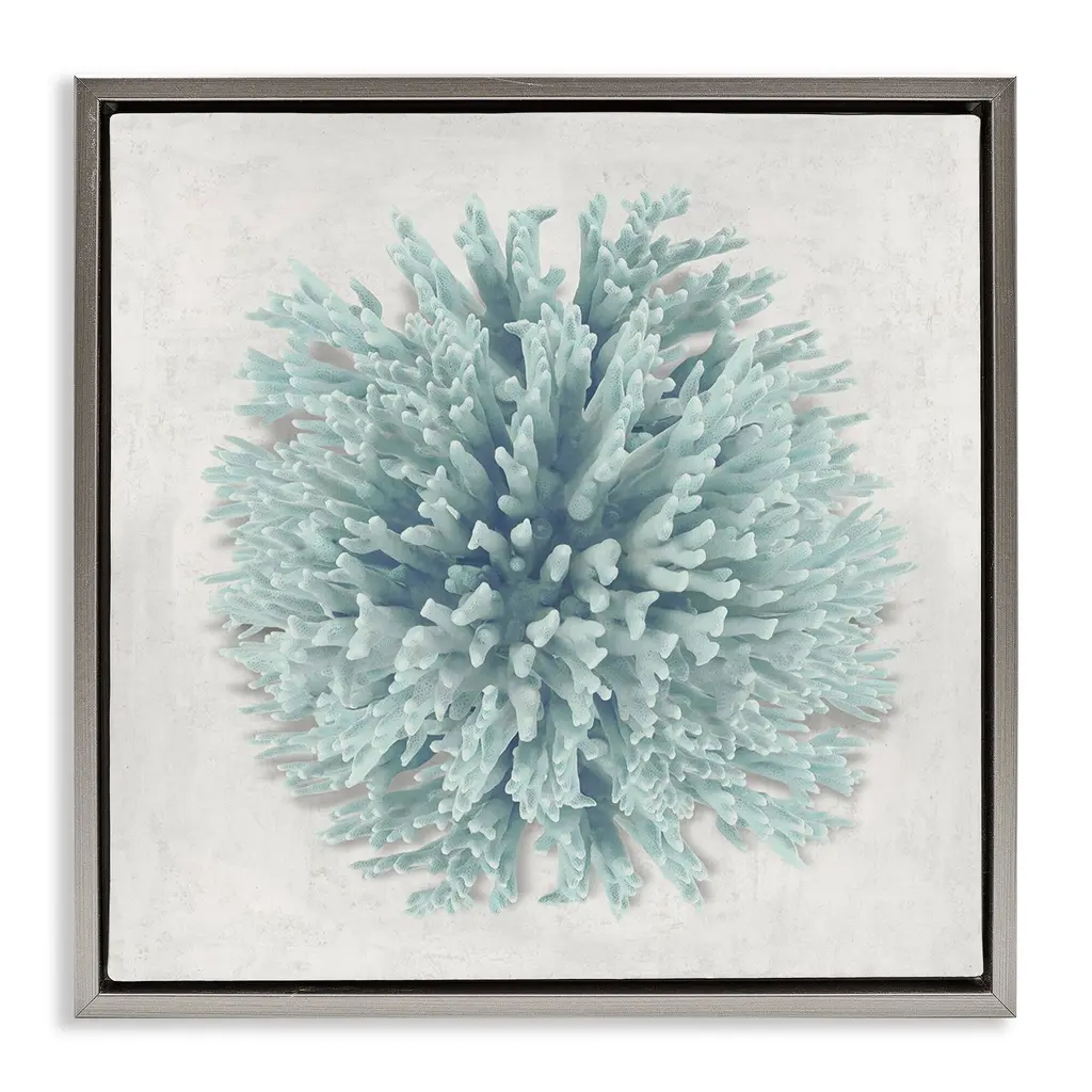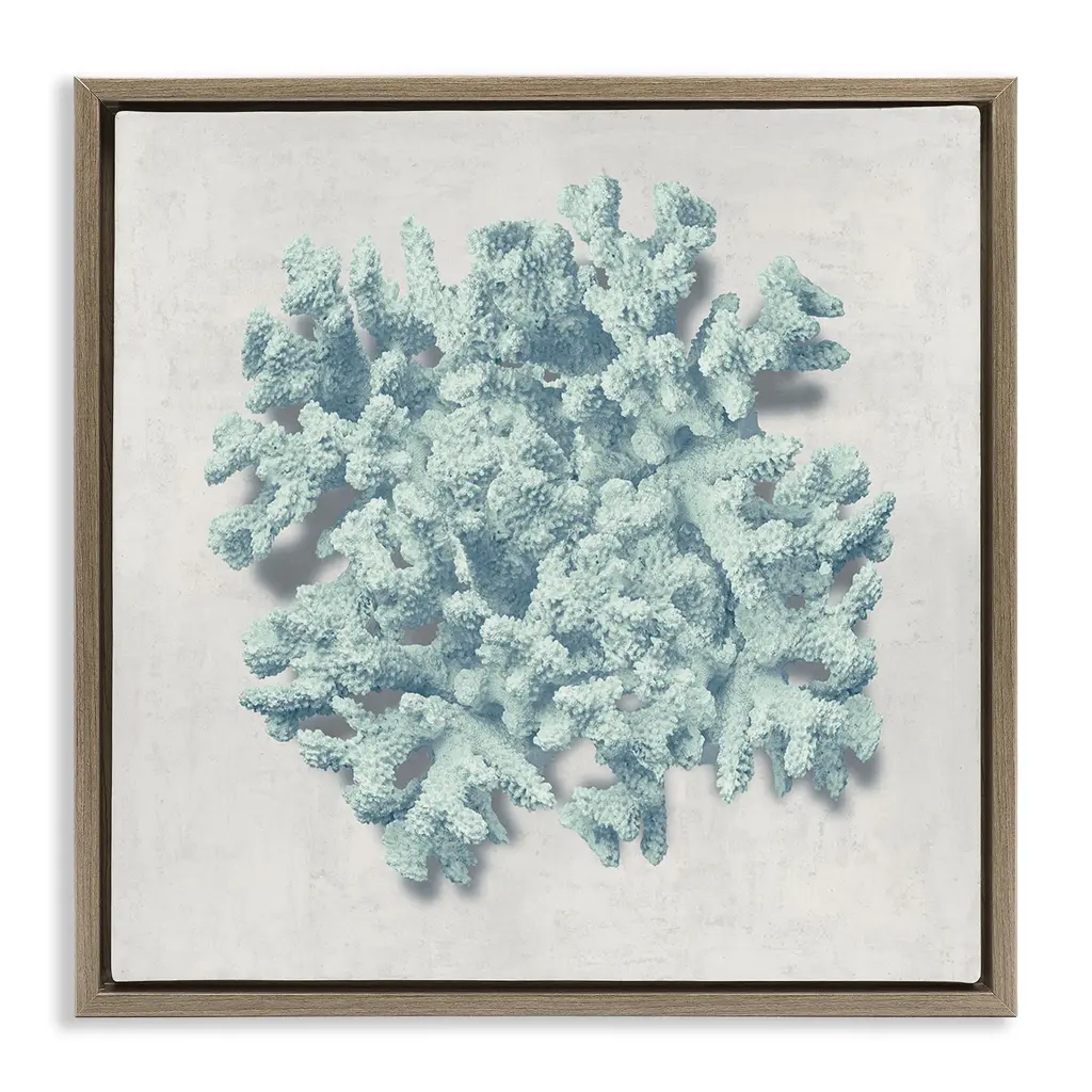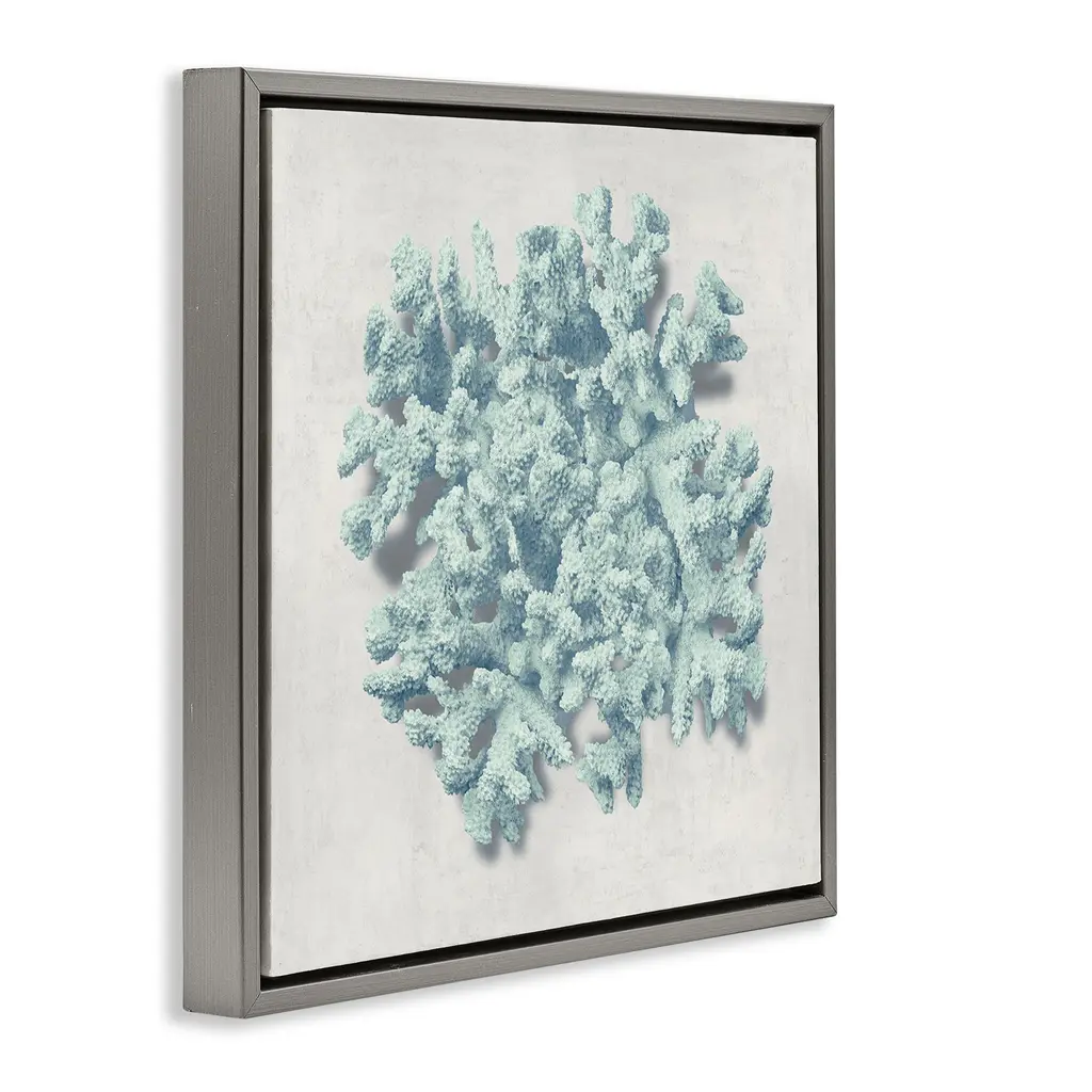 Elevate your home or office to the next level with Stupell Framed Floating Canvas Wall Art. Our premium hand-stretched canvas is mounted securely into a sturdy lightweight frame. The museum-style gap between the wrapped canvas and the box frame gives the illusion of floating artwork. Stupell Wall Art is made in the USA.Features: Dimensions: 18 x 1.7 x 18 Frame, 17 x 1.5 x 17 Canvas ArtFloating Frame Canvas Products are available in sizes 18"x18" and 25"x25". All Floating Frame Canvas Products have a 1.7" Depth.Wall Art is Ready to Hang with Hardware Free Hanging. No Installation required. For Easy Set Up Lean or Layer Artwork on Shelf or Against Wall. Artwork is Permently Fixed into the Frame.Our elevated 1.7" Thick Floating Frame is the perfect complement to our canvas style Wall Art. We use only the highest quality inks in house with industry leading printing solutions. Canvas is hand stretched over a durable wood foundation and then mounted securly into a Modern Box Frame. Made in the USA.Artwork Relates To: Coral, Abstract, Nautical, Sea Life, Blue, RusticDesign by Caroline Kelly