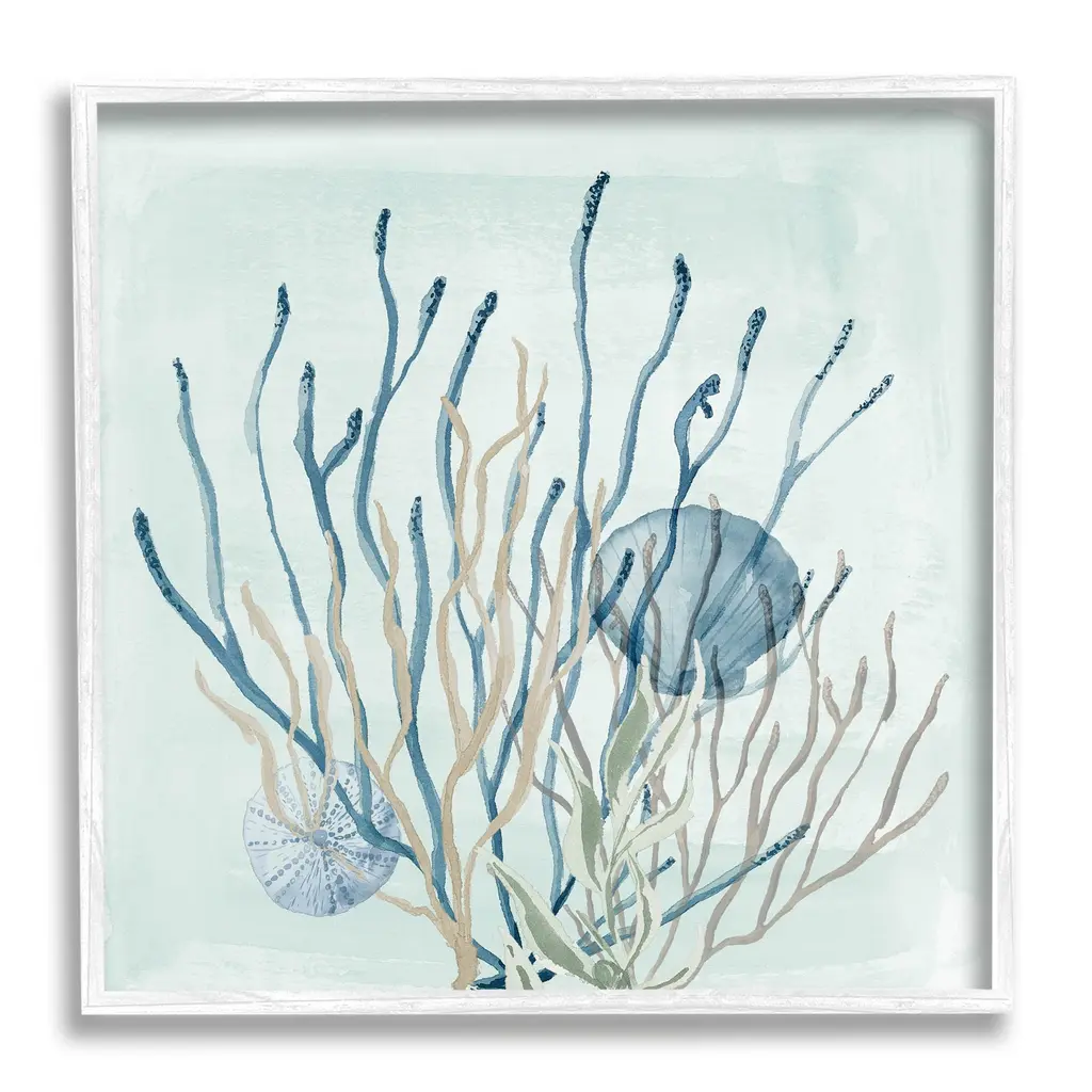 Our Framed Giclee Wall Art adds a touch of class to any space in your home or office. Frames are available in three alluring styles: black, gray farmhouse and white. Our textured artwork will add more depth and dimension to any space. Each piece is mounted with a 1.5 inch thick wood grain frame that is ready to hang! Looking for a statement piece? We have oversized artwork available.Features: Dimensions: 12 x 1.5 x 12 FramedFramed Giclee Sizes Include Standard: 12 x 1.5 x 12 Large: 17 x 1.5 x 17 Oversized: 24 x 1.5 x 24Wall Art is Ready to Hang - No Installation or Hardware Needed. For Easy Set Up Lean or Layer Artwork on Shelf or Against Wall.Our giclée prints are carefully mounted on a durable MDF backing, and then perfectly finished in a 1.5 inch thick woodgrain frame. Mounted frame colors include black, gray farmhouse and white. Made In USA.Artwork Relates To: Sea Life, Animal, Reef, Water, Sea, Nature, Coral Reef, Seashell, Invertebrate, Aquatic, SeashellDesign by Lucille Price