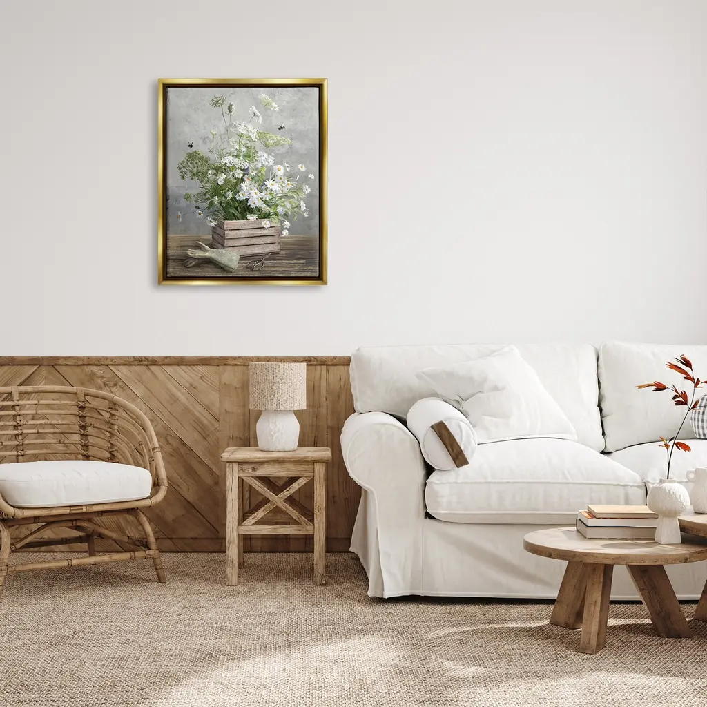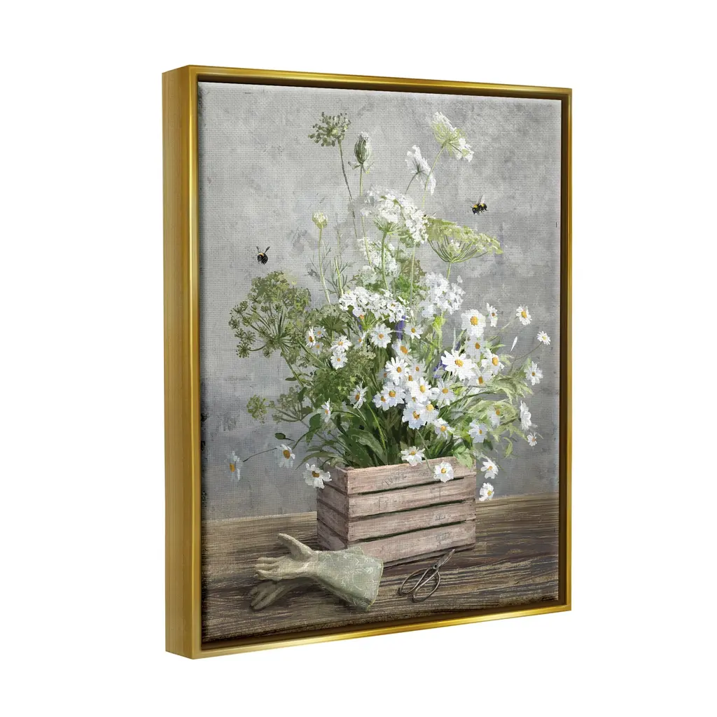 Stupell Cottage Gardening Bouquet Framed Floater Canvas Wall Art Design By Danhui Nai - 25 X 31 - Gold