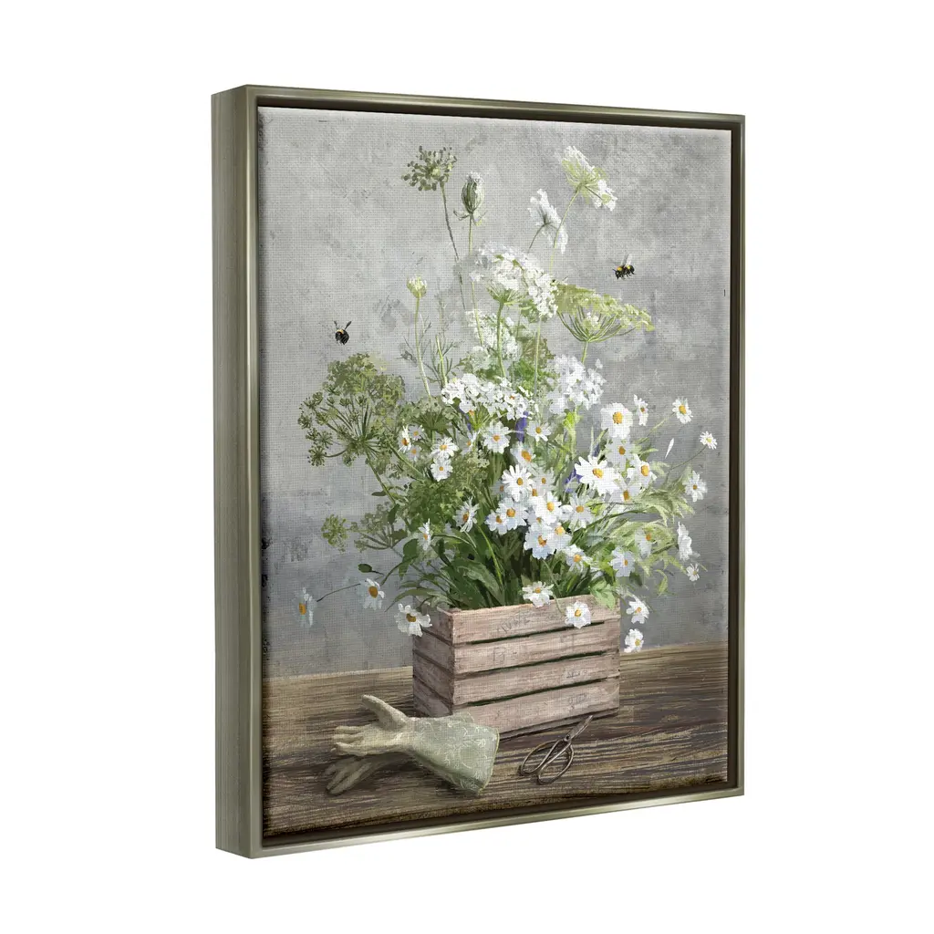 Stupell Cottage Gardening Bouquet Framed Floater Canvas Wall Art Design By Danhui Nai - 25 X 31 - Grey