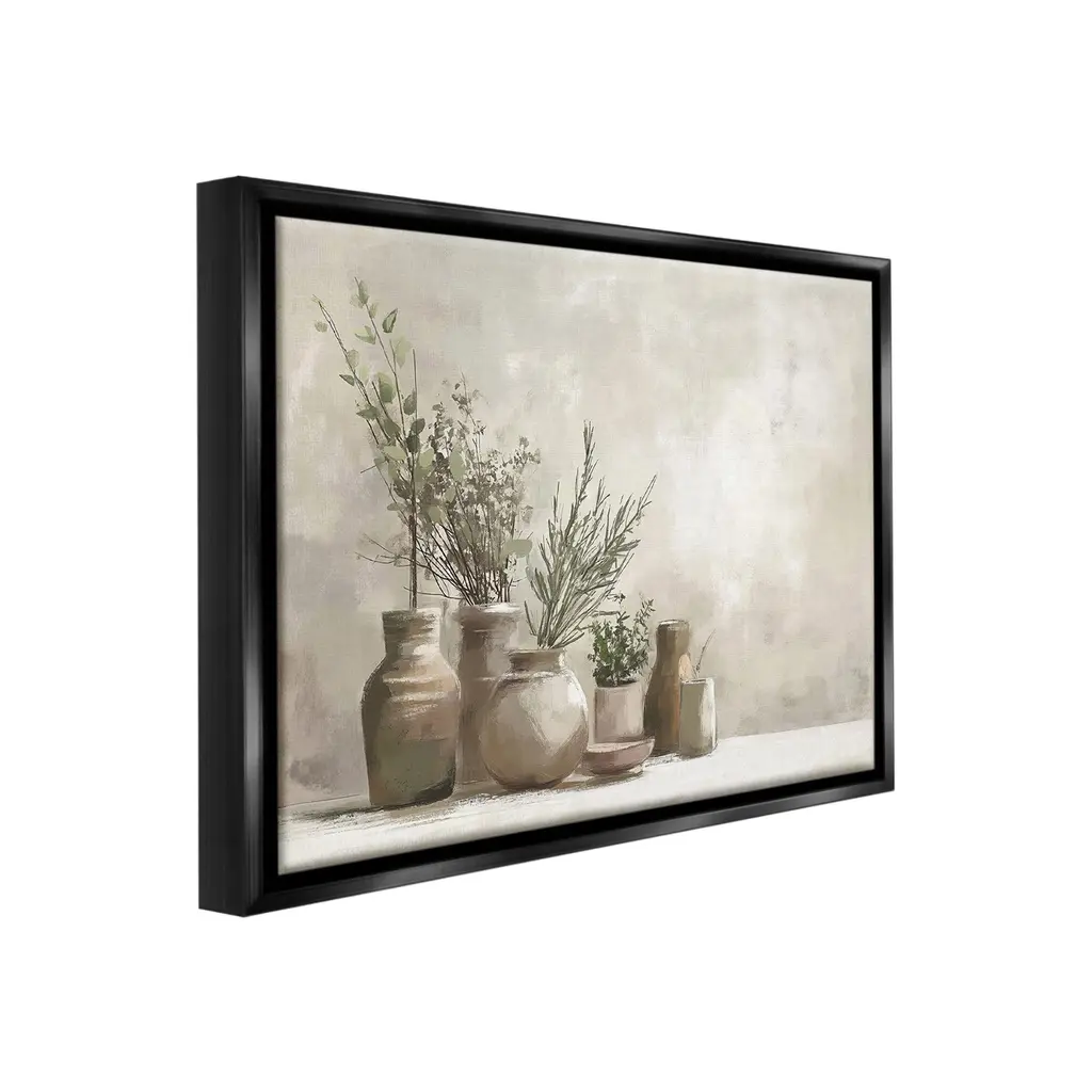 Elevate your home or office to the next level with Stupell Framed Floating Canvas Wall Art. Our premium hand-stretched canvas is mounted securely into a sturdy lightweight frame. The museum-style gap between the wrapped canvas and the box frame gives the illusion of floating artwork. Stupell Wall Art is made in the USA.Features: Dimensions: 21 x 1.7 x 17 Frame, 20 x 1.5 x 16 Canvas ArtFloating Frame Canvas Products are available in sizes 21"x17" and 31"x25". All Floating Frame Canvas Products have a 1.7" Depth.Wall Art is Ready to Hang with Hardware Free Hanging. No Installation required. For Easy Set Up Lean or Layer Artwork on Shelf or Against Wall. Artwork is Permently Fixed into the Frame.Our elevated 1.7" Thick Floating Frame is the perfect complement to our canvas style Wall Art. We use only the highest quality inks in house with industry leading printing solutions. Canvas is hand stretched over a durable wood foundation and then mounted securly into a Modern Box Frame. Made in the USA.Artwork Relates To: Plant, Pottery, Vase, Botanical, Plant, Leaf, Country, CottageDesign by Imagine It Images