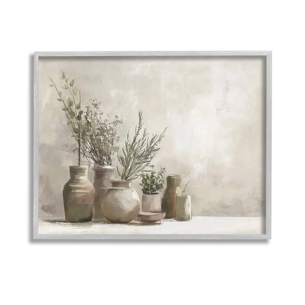 Add dimension to any room with our textured Framed Giclee Artwork. Our framed artwork is securely mounted into a 1.5-inch thick wood grain frame and ready to hang. Frames are available in three alluring styles: black, gray farmhouse and white. In addition, you should check out our oversized options if you want a statement piece. Stupell Wall Art is made in the USA.Features: Dimensions: 14 x 1.5 x 11 FramedFramed Giclee Products are available in the sizes 14"x11", 20"x16" or 30"x24". All Framed Giclee Products have a 1.5" Depth. Wall Art is Ready to Hang with Hardware Free Hanging. No installation required. For Easy Set Up Lean or Layer Artwork on Shelf or Against Wall.Our giclée prints are carefully mounted on a durable MDF backing, and then perfectly finished in a 1.5 inch thick woodgrain frame. Mounted frame colors include black, gray farmhouse and white. Made In USA.Artwork Relates To: Plant, Pottery, Vase, Botanical, Plant, Leaf, Country, CottageDesign by Imagine It Images
