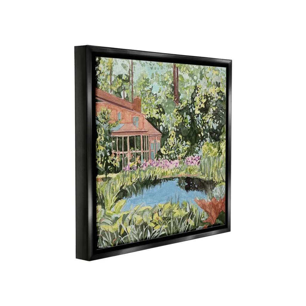 Elevate your home or office to the next level with Stupell Framed Floating Canvas Wall Art. Our premium hand-stretched canvas is mounted securely into a sturdy lightweight frame. The museum-style gap between the wrapped canvas and the box frame gives the illusion of floating artwork. Stupell Wall Art is made in the USA.Features: Dimensions: 18 x 1.7 x 18 Frame, 17 x 1.5 x 17 Canvas ArtFloating Frame Canvas Products are available in sizes 18"x18" and 25"x25". All Floating Frame Canvas Products have a 1.7" Depth.Wall Art is Ready to Hang with Hardware Free Hanging. No Installation required. For Easy Set Up Lean or Layer Artwork on Shelf or Against Wall. Artwork is Permently Fixed into the Frame.Our elevated 1.7" Thick Floating Frame is the perfect complement to our canvas style Wall Art. We use only the highest quality inks in house with industry leading printing solutions. Canvas is hand stretched over a durable wood foundation and then mounted securly into a Modern Box Frame. Made in the USA.Artwork Relates To: Cottage, House, Nature, Pond, Water, Plant, Garden, Flower, Villa, BackyardDesign by Melissa Wang