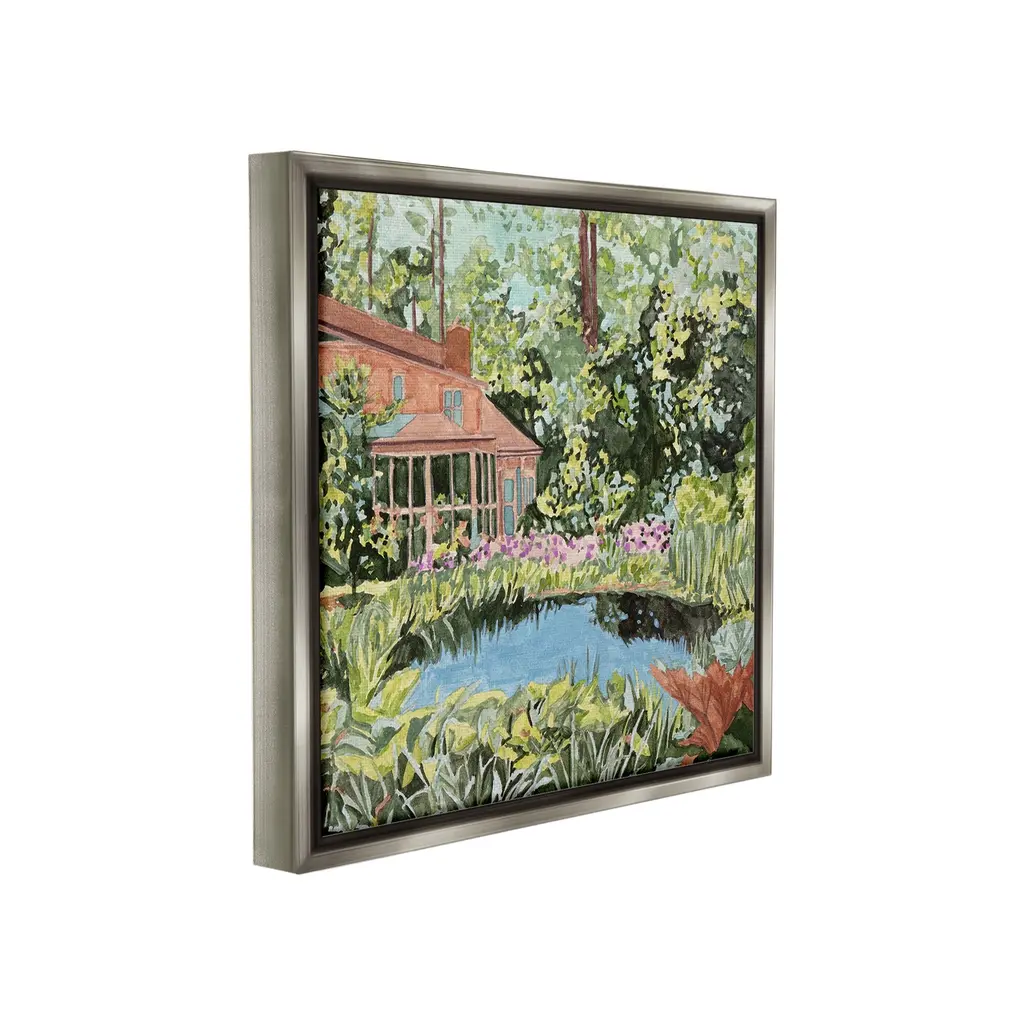 Elevate your home or office to the next level with Stupell Framed Floating Canvas Wall Art. Our premium hand-stretched canvas is mounted securely into a sturdy lightweight frame. The museum-style gap between the wrapped canvas and the box frame gives the illusion of floating artwork. Stupell Wall Art is made in the USA.Features: Dimensions: 18 x 1.7 x 18 Frame, 17 x 1.5 x 17 Canvas ArtFloating Frame Canvas Products are available in sizes 18"x18" and 25"x25". All Floating Frame Canvas Products have a 1.7" Depth.Wall Art is Ready to Hang with Hardware Free Hanging. No Installation required. For Easy Set Up Lean or Layer Artwork on Shelf or Against Wall. Artwork is Permently Fixed into the Frame.Our elevated 1.7" Thick Floating Frame is the perfect complement to our canvas style Wall Art. We use only the highest quality inks in house with industry leading printing solutions. Canvas is hand stretched over a durable wood foundation and then mounted securly into a Modern Box Frame. Made in the USA.Artwork Relates To: Cottage, House, Nature, Pond, Water, Plant, Garden, Flower, Villa, BackyardDesign by Melissa Wang