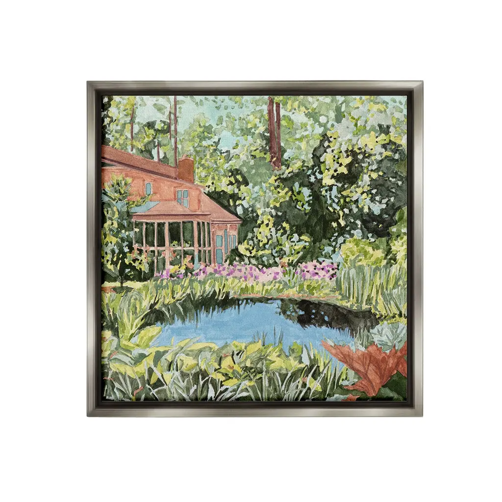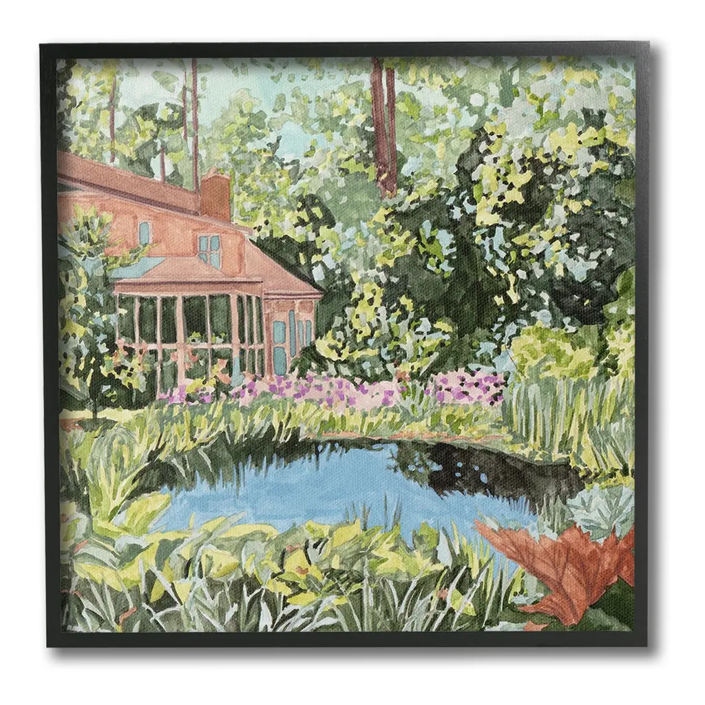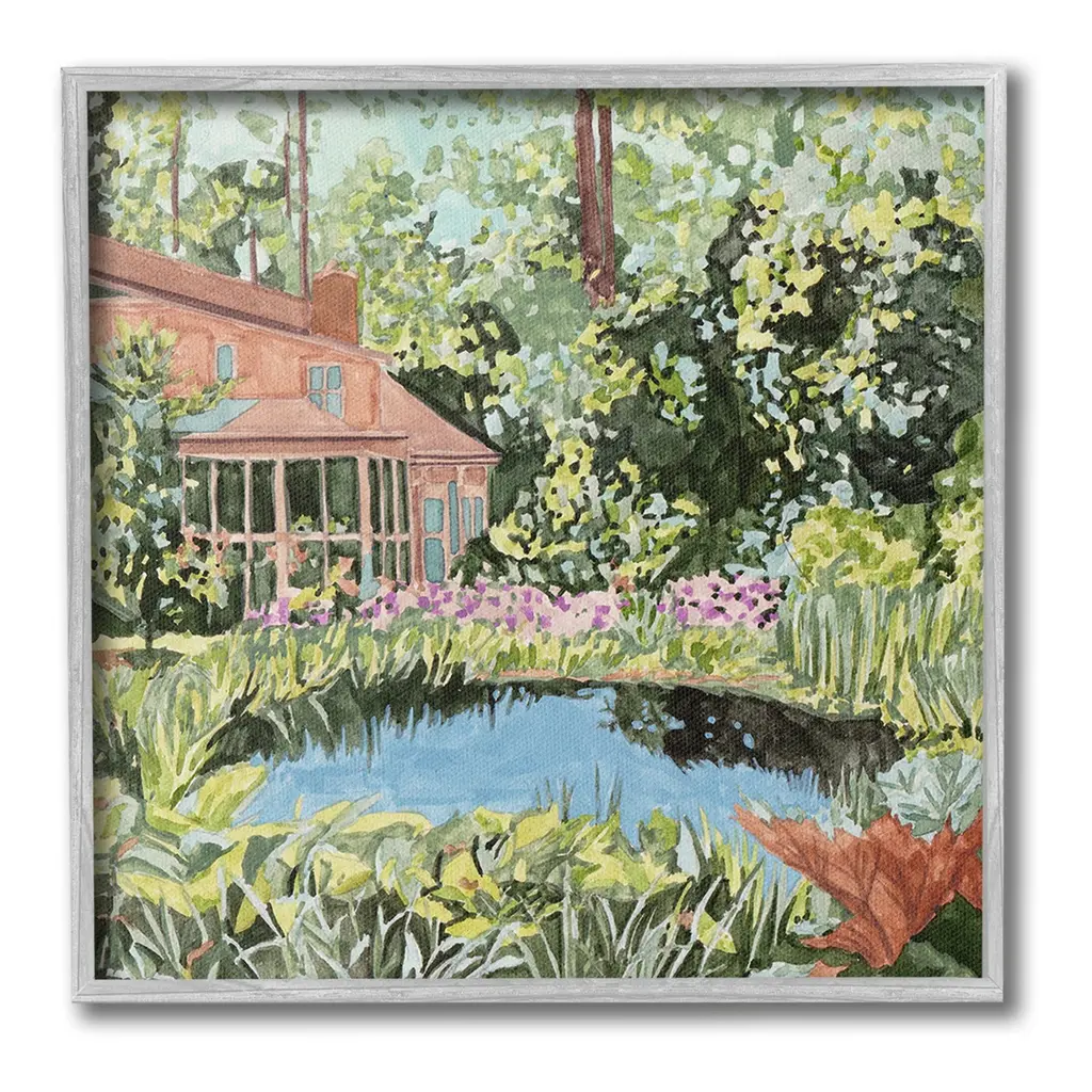 Add dimension to any room with our textured Framed Giclee Artwork. Our framed artwork is securely mounted into a 1.5-inch thick wood grain frame and ready to hang. Frames are available in three alluring styles: black, gray farmhouse and white. In addition, you should check out our oversized options if you want a statement piece. Stupell Wall Art is made in the USA.Features: Dimensions: 12 x 1.5 x 12 FramedFramed Giclee Product Sizes Include 12"x12", 17"x17", and 24"x24". Framed Giclee Products have a 1.5" Depth. Wall Art is Ready to Hang with Hardware Free Hanging. No installation required. For Easy Set Up Lean or Layer Artwork on Shelf or Against Wall.Our giclée prints are carefully mounted on a durable MDF backing, and then perfectly finished in a 1.5 inch thick woodgrain frame. Mounted frame colors include black, gray farmhouse and white. Made In USA.Artwork Relates To: Cottage, House, Nature, Pond, Water, Plant, Garden, Flower, Villa, BackyardDesign by Melissa Wang