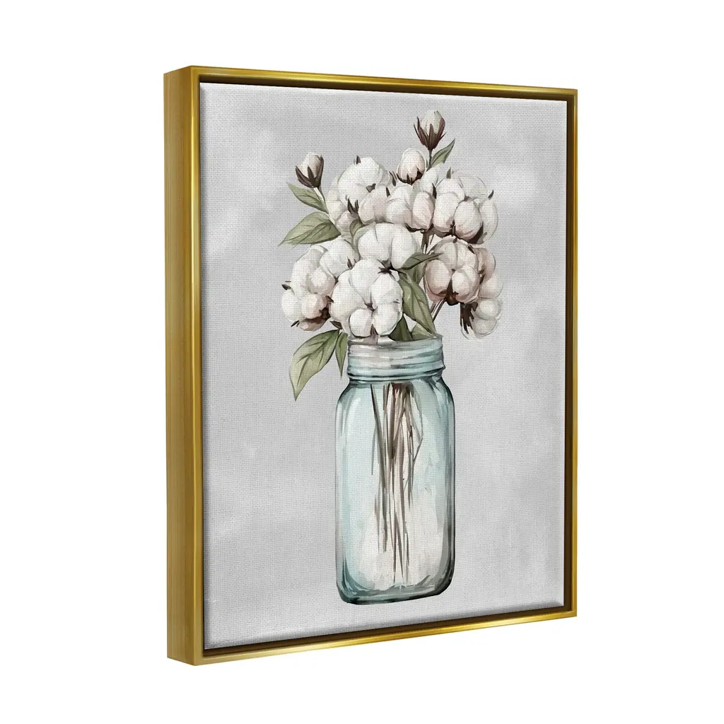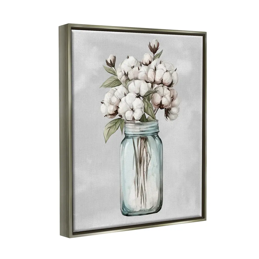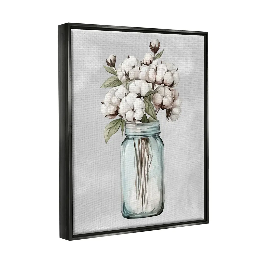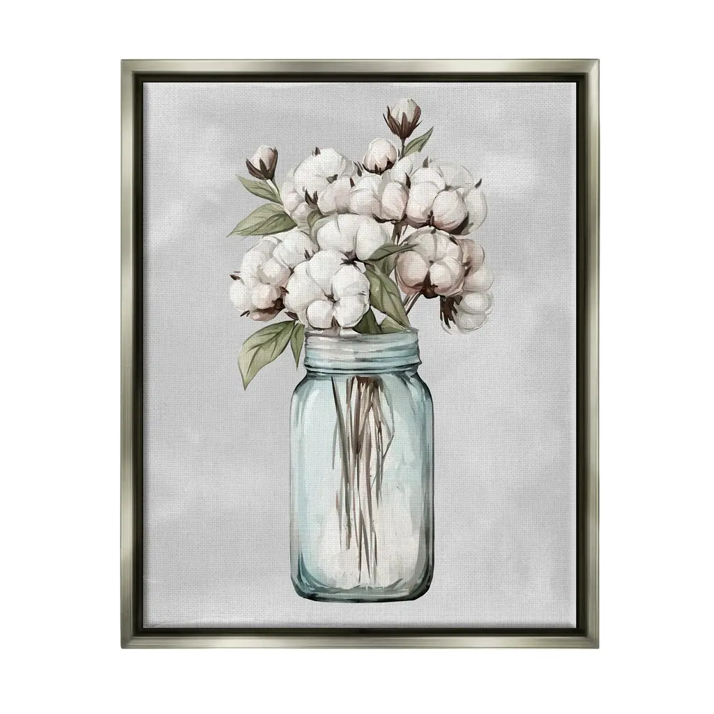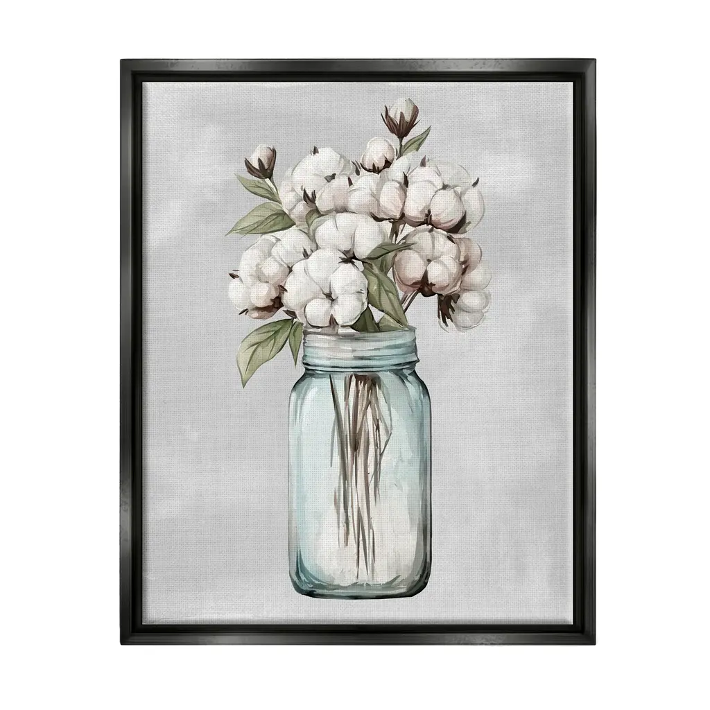 Elevate your home or office to the next level with Stupell Framed Floating Canvas Wall Art. Our premium hand-stretched canvas is mounted securely into a sturdy lightweight frame. The museum-style gap between the wrapped canvas and the box frame gives the illusion of floating artwork. Stupell Wall Art is made in the USA.Features: Dimensions: 17 x 1.7 x 21 Frame, 16 x 1.5 x 20 Canvas ArtFloating Frame Sizes Include Standard: 17 x 1.7 x 21 Oversized: 25 x 1.7 x 31Wall Art is Ready to Hang - No Installation or Hardware Needed. For Easy Set Up Lean or Layer Artwork on Shelf or Against Wall.Our elevated 1.7" Thick Floating Frame is the perfect complement to our canvas style Wall Art. We use only the highest quality inks in house with industry leading printing solutions. Canvas is hand stretched over a durable wood foundation and then mounted securly into a Modern Box Frame. Made in the USA.Artwork Relates To: Jar, Plant, Pottery, Mason Jar, Country, Farmhouse, Flower, Botanical, Cotton FlowerDesign by Ziwei Li