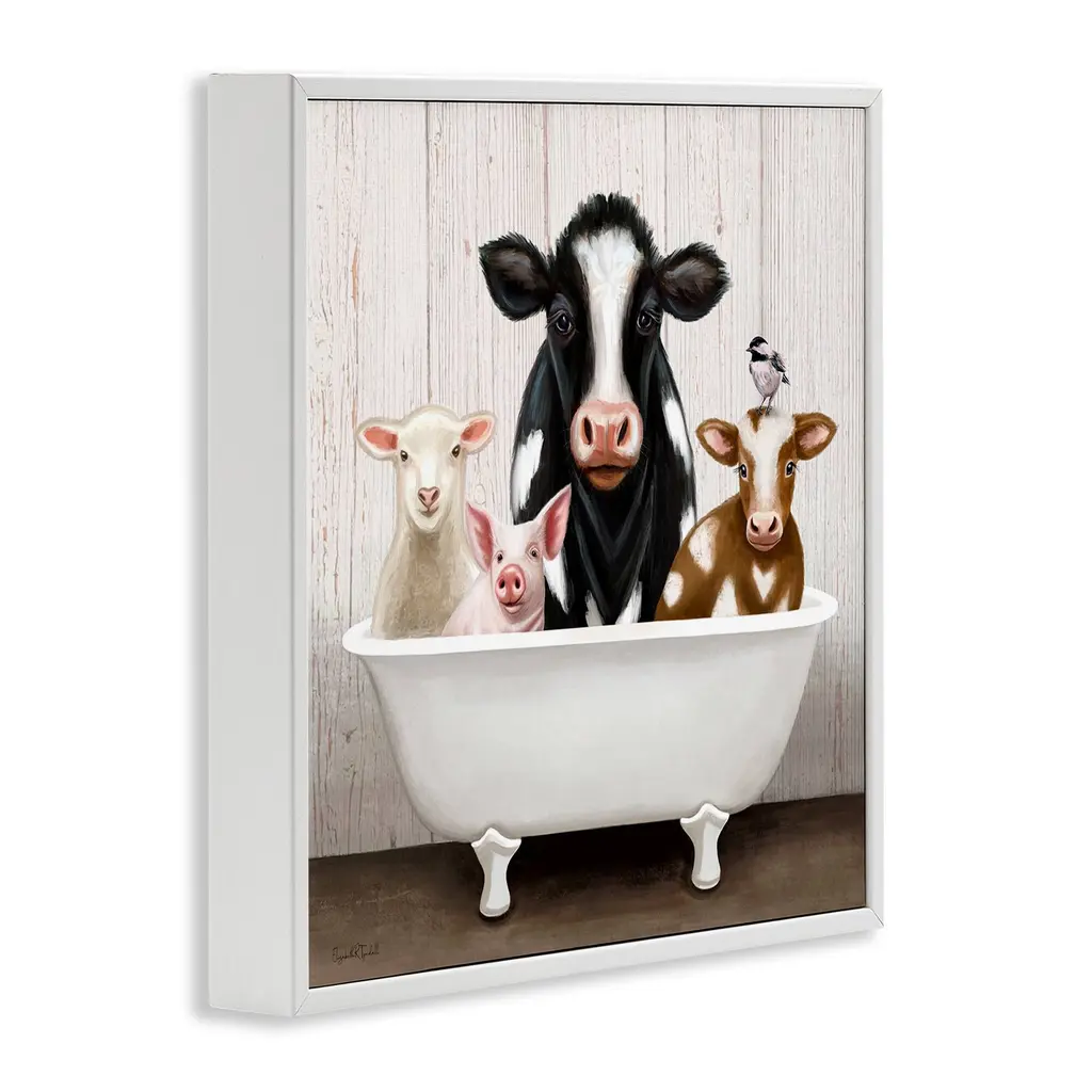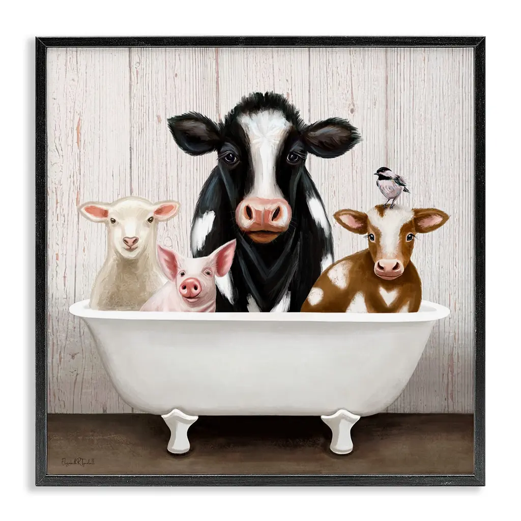 Our Framed Giclee Wall Art adds a touch of class to any space in your home or office. Frames are available in three alluring styles: black, gray farmhouse and white. Our textured artwork will add more depth and dimension to any space. Each piece is mounted with a 1.5 inch thick wood grain frame that is ready to hang! Looking for a statement piece? We have oversized artwork available.Features:Framed Giclee Sizes IncludeStandard: 12 x 1.5 x 12Large: 17 x 1.5 x 17Oversized: 24 x 1.5 x 24Wall Art is Ready to Hang - No Installation or Hardware Needed. For Easy Set Up Lean or Layer Artwork on Shelf or Against Wall.Artwork Relates To: Mammal, Animal, Tub, Cow, Cattle, Bathtub, Sheep, Bathroom, PigOur giclee prints are carefully mounted on a durable MDF backing, and then perfectly finished in a 1.5 inch thick woodgrain frame. Mounted frame colors include black, gray farmhouse and white. Made In USA.Design by Elizabeth Tyndall