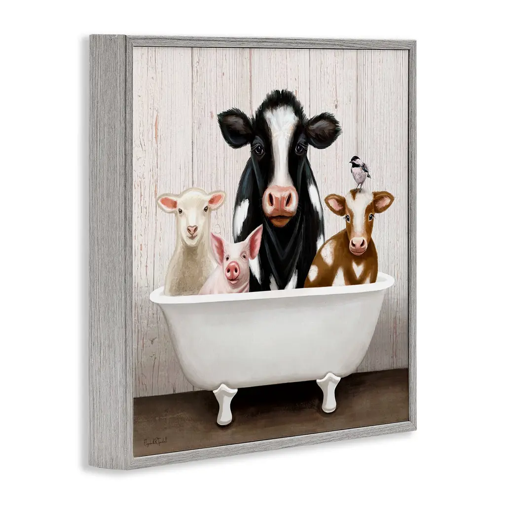 Our Framed Giclee Wall Art adds a touch of class to any space in your home or office. Frames are available in three alluring styles: black, gray farmhouse and white. Our textured artwork will add more depth and dimension to any space. Each piece is mounted with a 1.5 inch thick wood grain frame that is ready to hang! Looking for a statement piece? We have oversized artwork available.Features:Framed Giclee Sizes IncludeStandard: 12 x 1.5 x 12Large: 17 x 1.5 x 17Oversized: 24 x 1.5 x 24Wall Art is Ready to Hang - No Installation or Hardware Needed. For Easy Set Up Lean or Layer Artwork on Shelf or Against Wall.Artwork Relates To: Mammal, Animal, Tub, Cow, Cattle, Bathtub, Sheep, Bathroom, PigOur giclee prints are carefully mounted on a durable MDF backing, and then perfectly finished in a 1.5 inch thick woodgrain frame. Mounted frame colors include black, gray farmhouse and white. Made In USA.Design by Elizabeth Tyndall