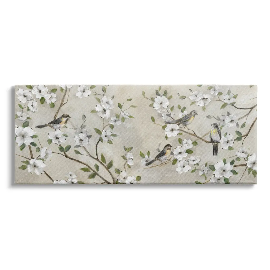 Stupell Country Birds Soft White Floral Blossom Tree Branches Canvas Wall Art - Green - 30 X 13