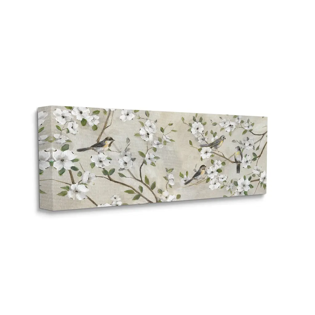 Stupell Country Birds Soft White Floral Blossom Tree Branches Canvas Wall Art - Green - 40 X 17
