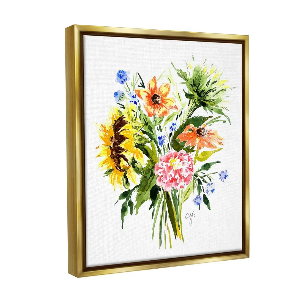 Stupell Country Bunches Bouquet Framed Floater Canvas Wall Art Design By Alexandria Gilbert Kincaid - 17 X 21 - Gold