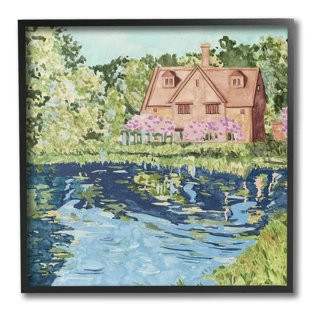 Add dimension to any room with our textured Framed Giclee Artwork. Our framed artwork is securely mounted into a 1.5-inch thick wood grain frame and ready to hang. Frames are available in three alluring styles: black, gray farmhouse and white. In addition, you should check out our oversized options if you want a statement piece. Stupell Wall Art is made in the USA.Features: Dimensions: 12 x 1.5 x 12 FramedFramed Giclee Product Sizes Include 12"x12", 17"x17", and 24"x24". Framed Giclee Products have a 1.5" Depth. Wall Art is Ready to Hang with Hardware Free Hanging. No installation required. For Easy Set Up Lean or Layer Artwork on Shelf or Against Wall.Our giclée prints are carefully mounted on a durable MDF backing, and then perfectly finished in a 1.5 inch thick woodgrain frame. Mounted frame colors include black, gray farmhouse and white. Made In USA.Artwork Relates To: Cottage, House, Nature, Pond, Water, Plant, Garden, Flower, Villa, BackyardDesign by Melissa Wang