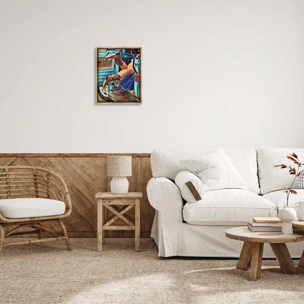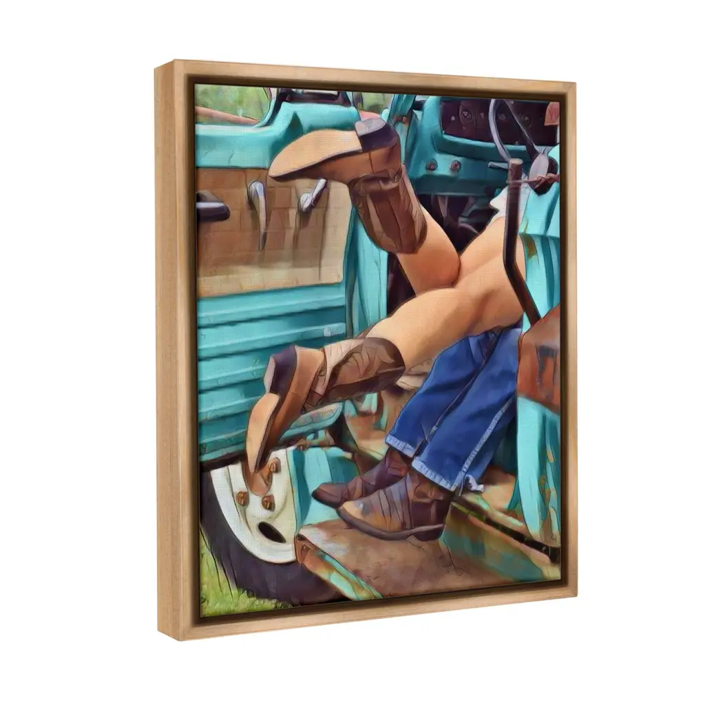 Elevate your home or office to the next level with Stupell Framed Floating Canvas Wall Art. Our premium hand-stretched canvas is mounted securely into a sturdy lightweight frame. The museum-style gap between the wrapped canvas and the box frame gives the illusion of floating artwork. Stupell Wall Art is made in the USA.Features: Dimensions: 17 x 1.7 x 21 Frame, 16 x 1.5 x 20 Canvas ArtFloating Frame Canvas Products are available in sizes 17"x21" and 25"x31". All Floating Frame Canvas Products have a 1.7" Depth.Wall Art is Ready to Hang with Hardware Free Hanging. No Installation required. For Easy Set Up Lean or Layer Artwork on Shelf or Against Wall. Artwork is Permently Fixed into the Frame.Our elevated 1.7" Thick Floating Frame is the perfect complement to our canvas style Wall Art. We use only the highest quality inks in house with industry leading printing solutions. Canvas is hand stretched over a durable wood foundation and then mounted securly into a Modern Box Frame. Made in the USA.Artwork Relates To: Equestrian, Rodeo, Country, Southwestern, Cowgirl, Cowboy, Couple, Romance, Car, TruckDesign by Jesse Keith