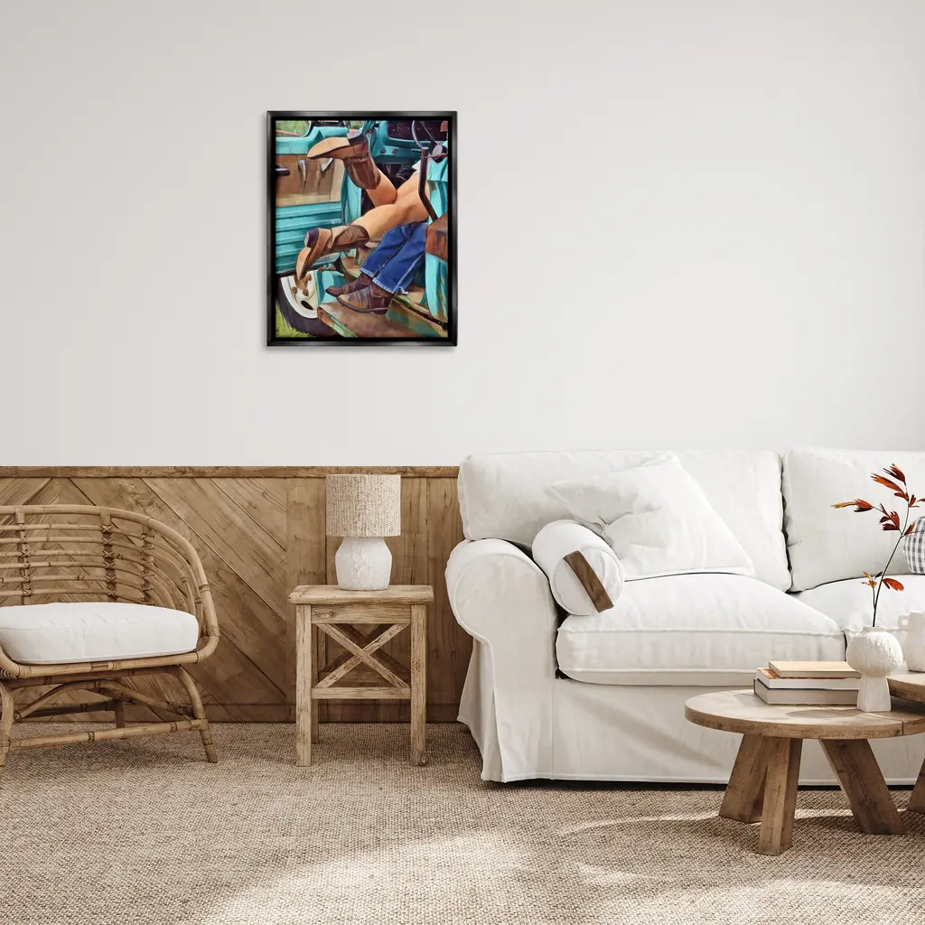 Elevate your home or office to the next level with Stupell Framed Floating Canvas Wall Art. Our premium hand-stretched canvas is mounted securely into a sturdy lightweight frame. The museum-style gap between the wrapped canvas and the box frame gives the illusion of floating artwork. Stupell Wall Art is made in the USA.Features: Dimensions: 17 x 1.7 x 21 Frame, 16 x 1.5 x 20 Canvas ArtFloating Frame Canvas Products are available in sizes 17"x21" and 25"x31". All Floating Frame Canvas Products have a 1.7" Depth.Wall Art is Ready to Hang with Hardware Free Hanging. No Installation required. For Easy Set Up Lean or Layer Artwork on Shelf or Against Wall. Artwork is Permently Fixed into the Frame.Our elevated 1.7" Thick Floating Frame is the perfect complement to our canvas style Wall Art. We use only the highest quality inks in house with industry leading printing solutions. Canvas is hand stretched over a durable wood foundation and then mounted securly into a Modern Box Frame. Made in the USA.Artwork Relates To: Equestrian, Rodeo, Country, Southwestern, Cowgirl, Cowboy, Couple, Romance, Car, TruckDesign by Jesse Keith