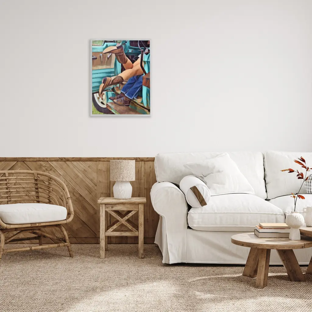 Add dimension to any room with our textured Framed Giclee Artwork. Our framed artwork is securely mounted into a 1.5-inch thick wood grain frame and ready to hang. Frames are available in three alluring styles: black, gray farmhouse and white. In addition, you should check out our oversized options if you want a statement piece. Stupell Wall Art is made in the USA.Features: Dimensions: 11 x 1.5 x 14 FramedFramed Giclee Products are available in the sizes 11"x14", 16"x20" or 24"x30". All Framed Giclee Products have a 1.5" Depth. Wall Art is Ready to Hang with Hardware Free Hanging. No installation required. For Easy Set Up Lean or Layer Artwork on Shelf or Against Wall.Our giclée prints are carefully mounted on a durable MDF backing, and then perfectly finished in a 1.5 inch thick woodgrain frame. Mounted frame colors include black, gray farmhouse and white. Made In USA.Artwork Relates To: Equestrian, Rodeo, Country, Southwestern, Cowgirl, Cowboy, Couple, Romance, Car, TruckDesign by Jesse Keith