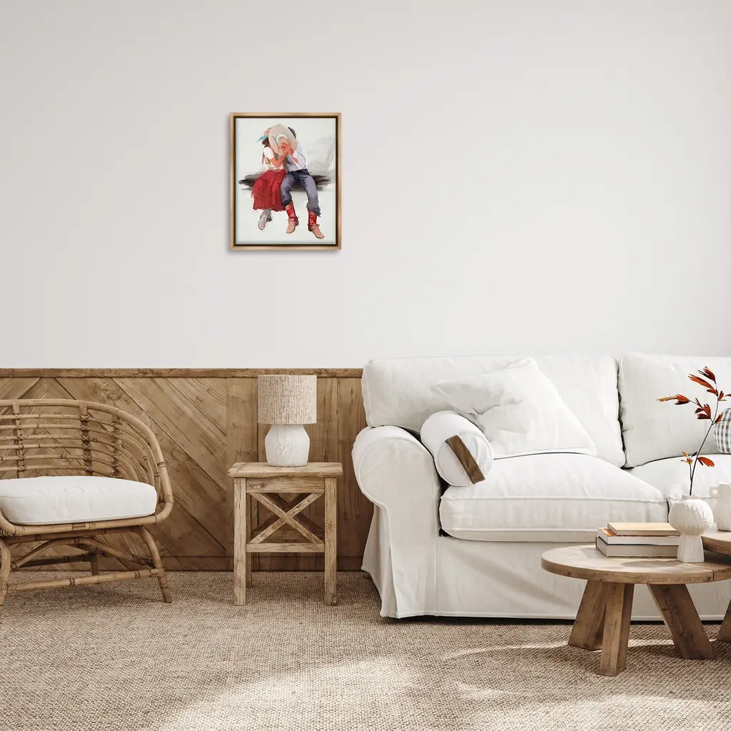 Elevate your home or office to the next level with Stupell Framed Floating Canvas Wall Art. Our premium hand-stretched canvas is mounted securely into a sturdy lightweight frame. The museum-style gap between the wrapped canvas and the box frame gives the illusion of floating artwork. Stupell Wall Art is made in the USA.Features: Dimensions: 17 x 1.7 x 21 Frame, 16 x 1.5 x 20 Canvas ArtFloating Frame Canvas Products are available in sizes 17"x21" and 25"x31". All Floating Frame Canvas Products have a 1.7" Depth.Wall Art is Ready to Hang with Hardware Free Hanging. No Installation required. For Easy Set Up Lean or Layer Artwork on Shelf or Against Wall. Artwork is Permently Fixed into the Frame.Our elevated 1.7" Thick Floating Frame is the perfect complement to our canvas style Wall Art. We use only the highest quality inks in house with industry leading printing solutions. Canvas is hand stretched over a durable wood foundation and then mounted securly into a Modern Box Frame. Made in the USA.Artwork Relates To: Equestrian, Rodeo, Country, Southwestern, Cowgirl, Cowboy, Couple, Romance, RomanticDesign by Kamdon Kreations