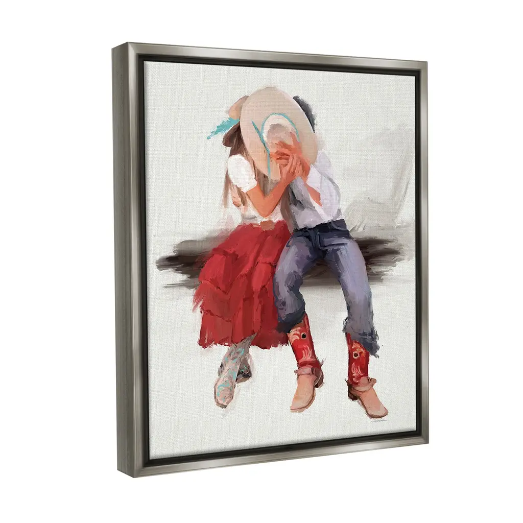 Elevate your home or office to the next level with Stupell Framed Floating Canvas Wall Art. Our premium hand-stretched canvas is mounted securely into a sturdy lightweight frame. The museum-style gap between the wrapped canvas and the box frame gives the illusion of floating artwork. Stupell Wall Art is made in the USA.Features: Dimensions: 17 x 1.7 x 21 Frame, 16 x 1.5 x 20 Canvas ArtFloating Frame Canvas Products are available in sizes 17"x21" and 25"x31". All Floating Frame Canvas Products have a 1.7" Depth.Wall Art is Ready to Hang with Hardware Free Hanging. No Installation required. For Easy Set Up Lean or Layer Artwork on Shelf or Against Wall. Artwork is Permently Fixed into the Frame.Our elevated 1.7" Thick Floating Frame is the perfect complement to our canvas style Wall Art. We use only the highest quality inks in house with industry leading printing solutions. Canvas is hand stretched over a durable wood foundation and then mounted securly into a Modern Box Frame. Made in the USA.Artwork Relates To: Equestrian, Rodeo, Country, Southwestern, Cowgirl, Cowboy, Couple, Romance, RomanticDesign by Kamdon Kreations