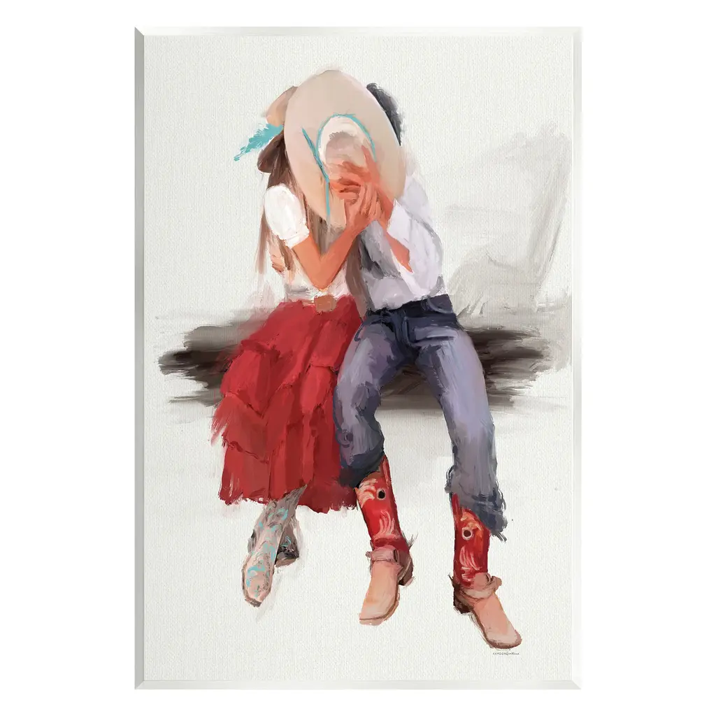 Our wall plaques start as high-quality lithograph prints mounted on durable 0.5-inch thick MDF wood. Each piece is hand finished and comes with a fresh layer of white foil on the sides to give it a crisp, clean look. Plaques arrive ready to hang without installation and come with removable plastic corners to keep them from damage in transit. Stupell Wall Art is made in the USA.Features: Dimensions: 10 x 0.5 x 15 InchesWall Plaque Product Sizes Include 10"x15" and 13"x19". All wall plaque products have a 0.5" Depth. Wall Art is Ready to Hang with Hardware Free Hanging. No installation required. For Easy Set Up Lean or Layer Artwork on Shelf or Against Wall.All of our wall plaques start off as high quality lithograph prints that are then mounted on durable 0.5 inch thick MDF wood. Each piece is hand finished and comes with a fresh layer of foil on the sides to give it a crisp clean look. Made In USA.Artwork Relates To: Equestrian, Rodeo, Country, Southwestern, Cowgirl, Cowboy, Couple, Romance, RomanticDesign by Kamdon Kreations
