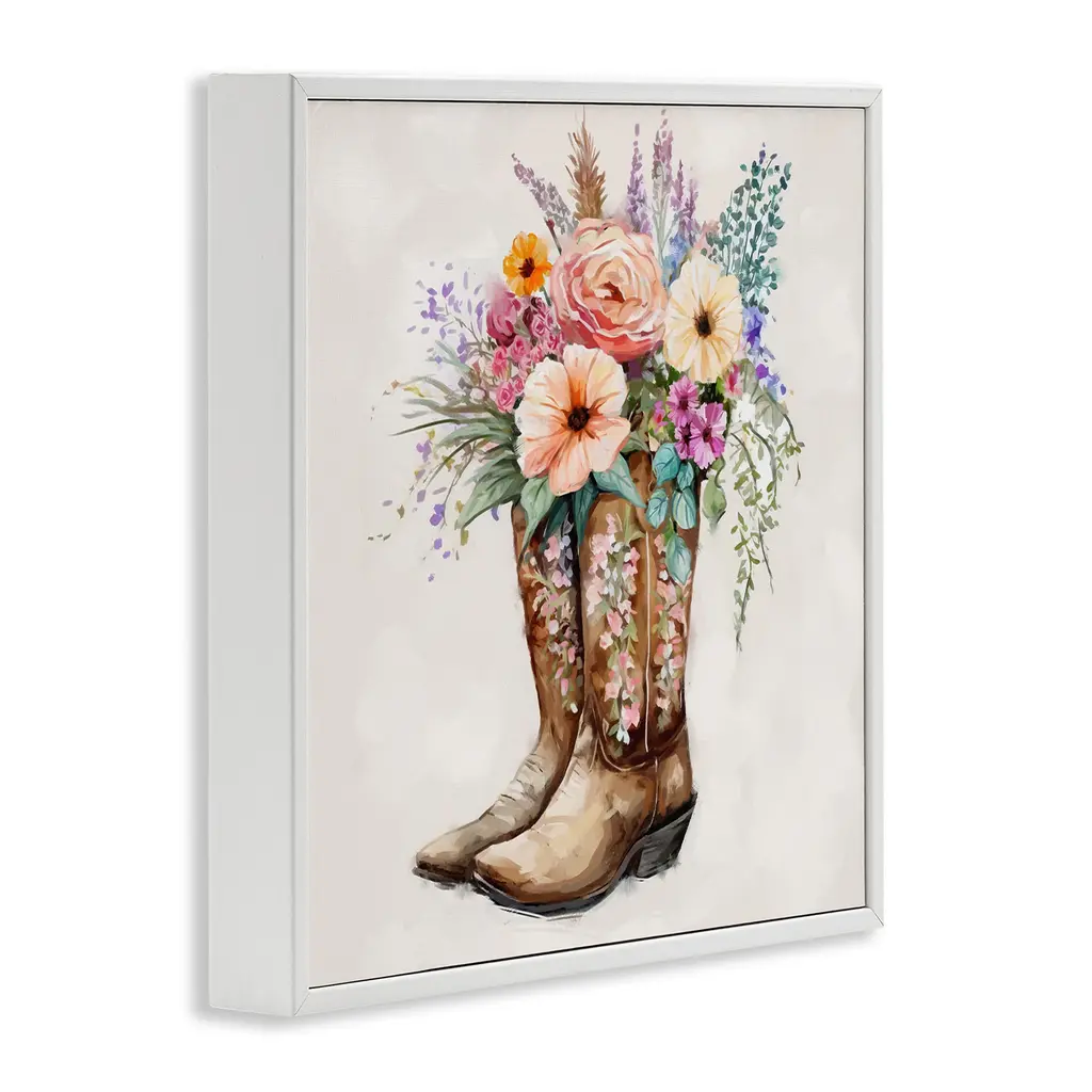 Add dimension to any room with our textured Framed Giclee Artwork. Our framed artwork is securely mounted into a 1.5-inch thick wood grain frame and ready to hang. Frames are available in three alluring styles: black, gray farmhouse and white. In addition, you should check out our oversized options if you want a statement piece. Stupell Wall Art is made in the USA.Features: Dimensions: 12 x 1.5 x 12 FramedFramed Giclee Sizes Include Standard: 12 x 1.5 x 12 Large: 17 x 1.5 x 17 Oversized: 24 x 1.5 x 24Wall Art is Ready to Hang - No Installation or Hardware Needed. For Easy Set Up Lean or Layer Artwork on Shelf or Against Wall.Our giclée prints are carefully mounted on a durable MDF backing, and then perfectly finished in a 1.5 inch thick woodgrain frame. Mounted frame colors include black, gray farmhouse and white. Made In USA.Artwork Relates To: Floral, Flower, Flower Arrangement, Flower Bouquet, Plant, Boot, Gardening, Cowboy BootsDesign by Ziwei Li