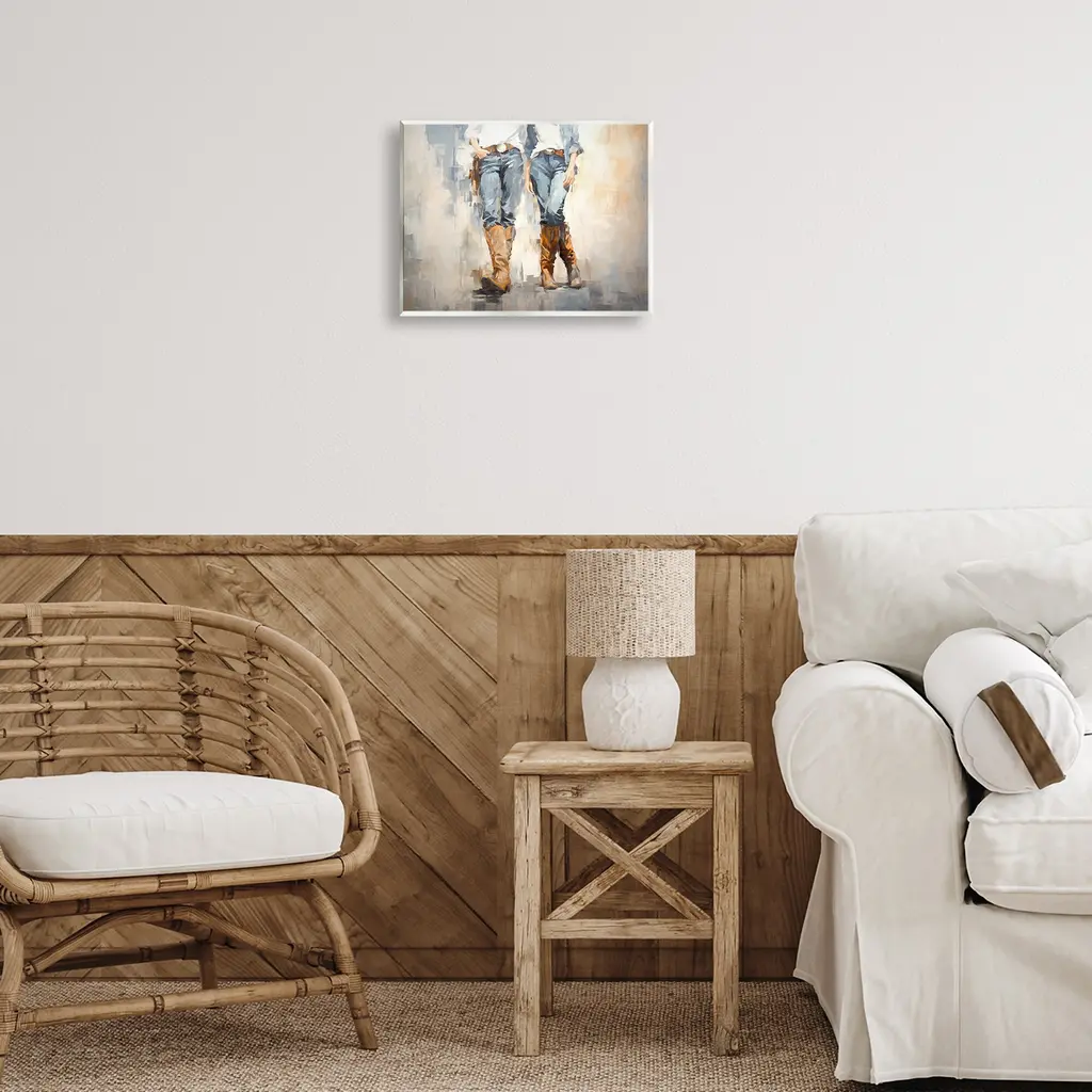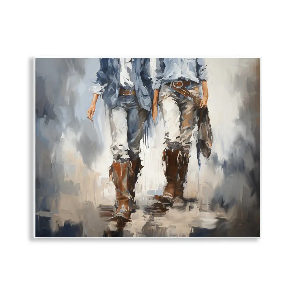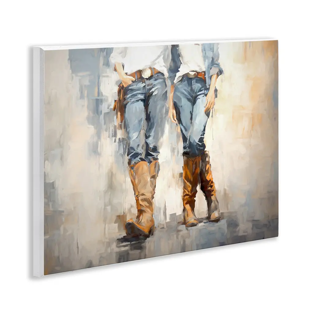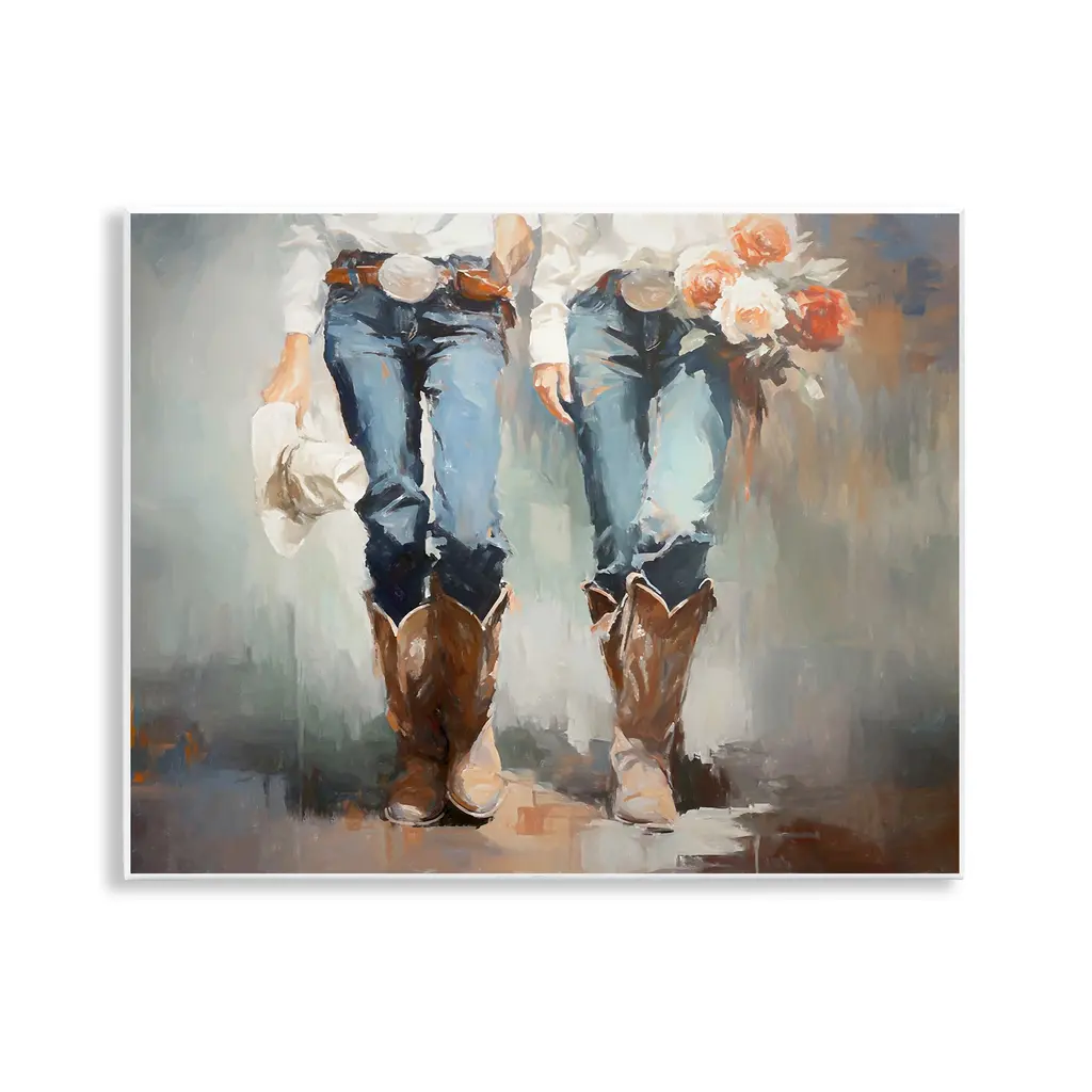 Our wall plaques start as high-quality lithograph prints mounted on durable 0.5-inch thick MDF wood. Each piece is hand finished and comes with a fresh layer of white foil on the sides to give it a crisp, clean look. Plaques arrive ready to hang without installation and come with removable plastic corners to keep them from damage in transit. Stupell Wall Art is made in the USA.Features: Dimensions: 14 x 0.5 x 11 InchesWall Art is Ready to Hang with Hardware Free Hanging. No installation required. For Easy Set Up Lean or Layer Artwork on Shelf or Against Wall.All of our wall plaques start off as high quality lithograph prints that are then mounted on durable 0.5 inch thick MDF wood. Each piece is hand finished and comes with a fresh layer of foil on the sides to give it a crisp clean look. Made In USA.Artwork Relates To: Man, Person, Boot, Jeans, Cowboy Boot, Cowboy, Cowgirl, Southwestern, Country, RomanceDesign by Ramona Murdock