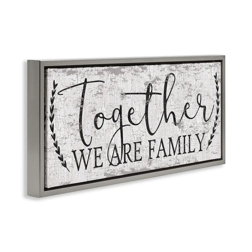 Elevate your home or office to the next level with Stupell Framed Floating Canvas Wall Art. Our premium hand-stretched canvas is mounted securely into a sturdy lightweight frame. The museum-style gap between the wrapped canvas and the box frame gives the illusion of floating artwork. Stupell Wall Art is made in the USA.Features: Dimensions: 25 x 1.7 x 11 Frame, 24 x 1.5 x 10 Canvas ArtFloating Frame Canvas Products are available in sizes 25"x11" and 31"x14". All Floating Frame Canvas Products have a 1.7" Depth.Wall Art is Ready to Hang with Hardware Free Hanging. No Installation required. For Easy Set Up Lean or Layer Artwork on Shelf or Against Wall. Artwork is Permently Fixed into the Frame.Our elevated 1.7" Thick Floating Frame is the perfect complement to our canvas style Wall Art. We use only the highest quality inks in house with industry leading printing solutions. Canvas is hand stretched over a durable wood foundation and then mounted securly into a Modern Box Frame. Made in the USA.Artwork Relates To: Phrase, Family, Botanical, Rustic, Weathered, Country, FarmhouseDesign by Dee Dee
