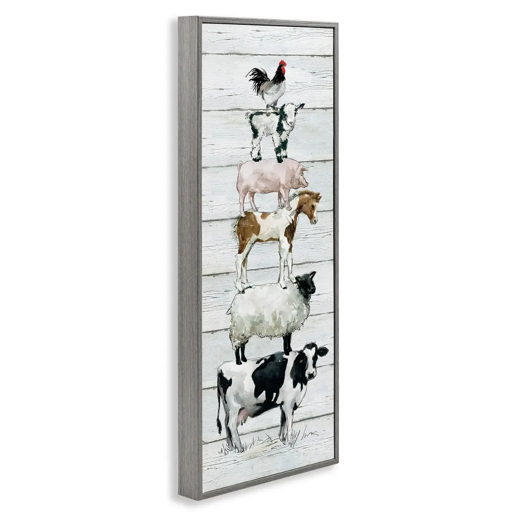 Stupell Country Farm Animal Stack Cow Sheep Pig Rooster Framed Wall Art - Multi-Color - 13 X 30 - Grey