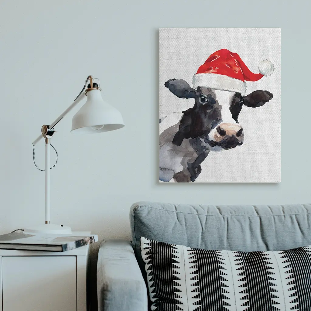 Stupell Country Farm Cow Red Santa Clause Hat Canvas Wall Art - 30 X 40