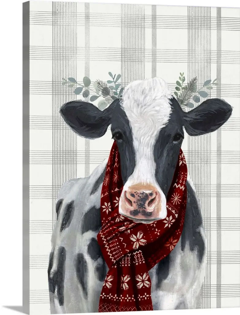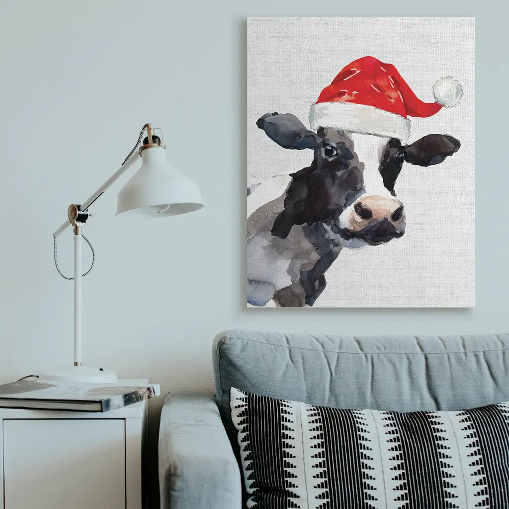 Stupell Country Farm Cow Red Santa Clause Hat Canvas Wall Art - 36 X 48